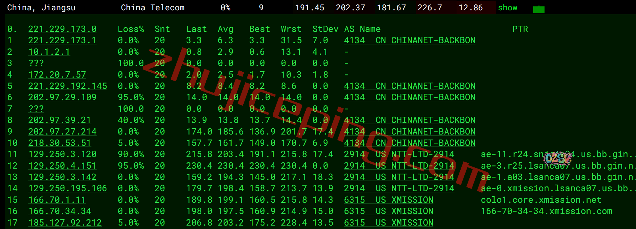 电信回程:走NTT到圣何塞然后去电信洛杉矶节点,直连回国