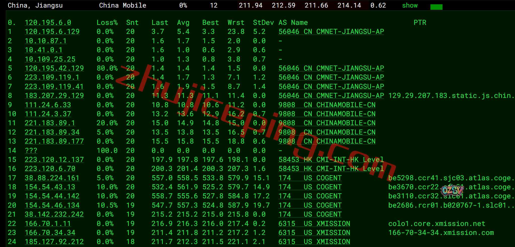 移动去程:直连移动圣何塞节点后走cogent去盐湖城机房