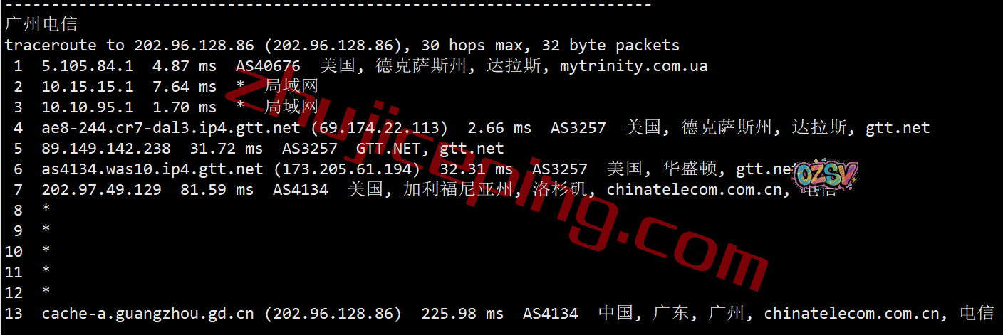 广州方向:走GTT到华盛顿西雅图,从电信西雅图节点直连回国