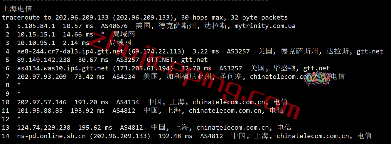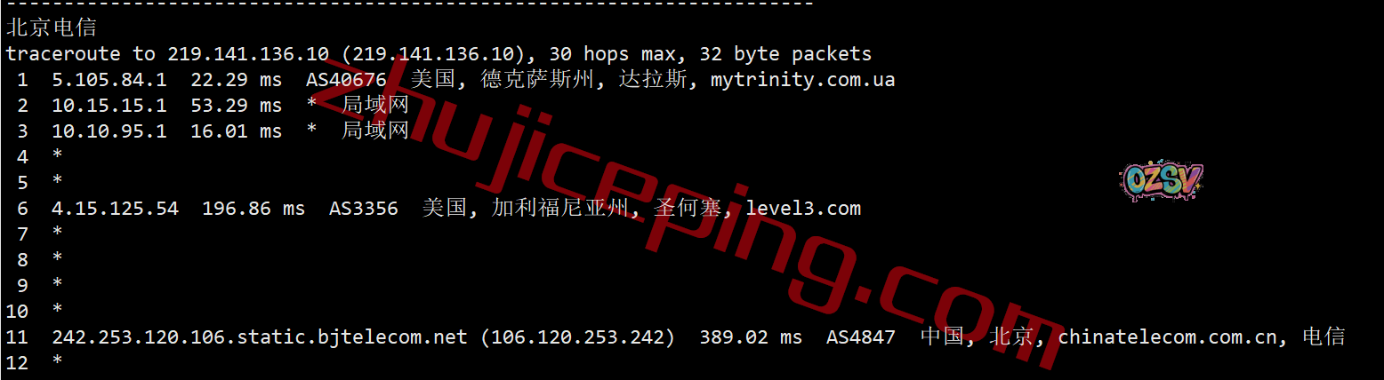 电信去程:直连电信圣何塞节点后转GTT去达拉斯