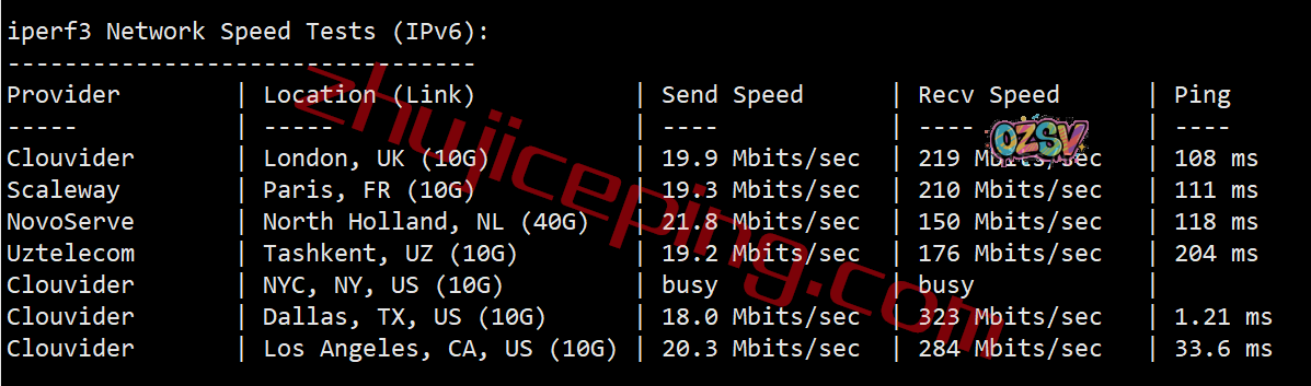 还是iperf3测试欧美节点,子不过这次是IPv6环境: