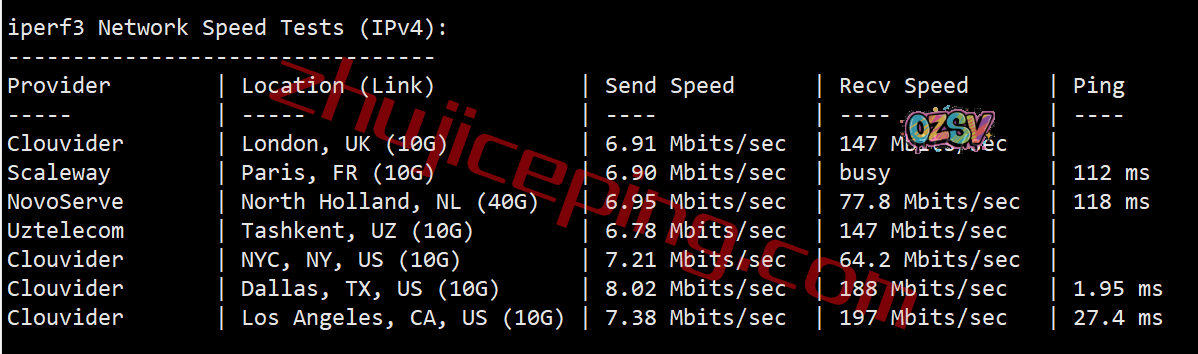 从前面的测试来看,貌似达拉斯数据的VPS的上行比较傻缺,只给了20Mbps…