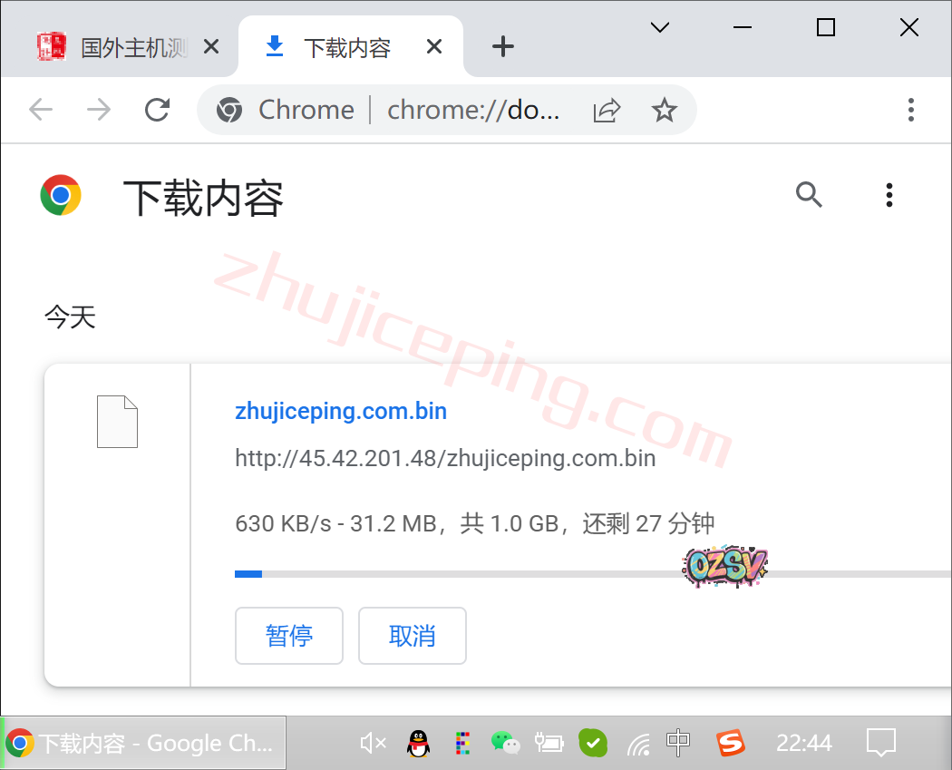 存放在测试小鸡上面的文件,广州电信家庭带宽的下载速度大致如下: