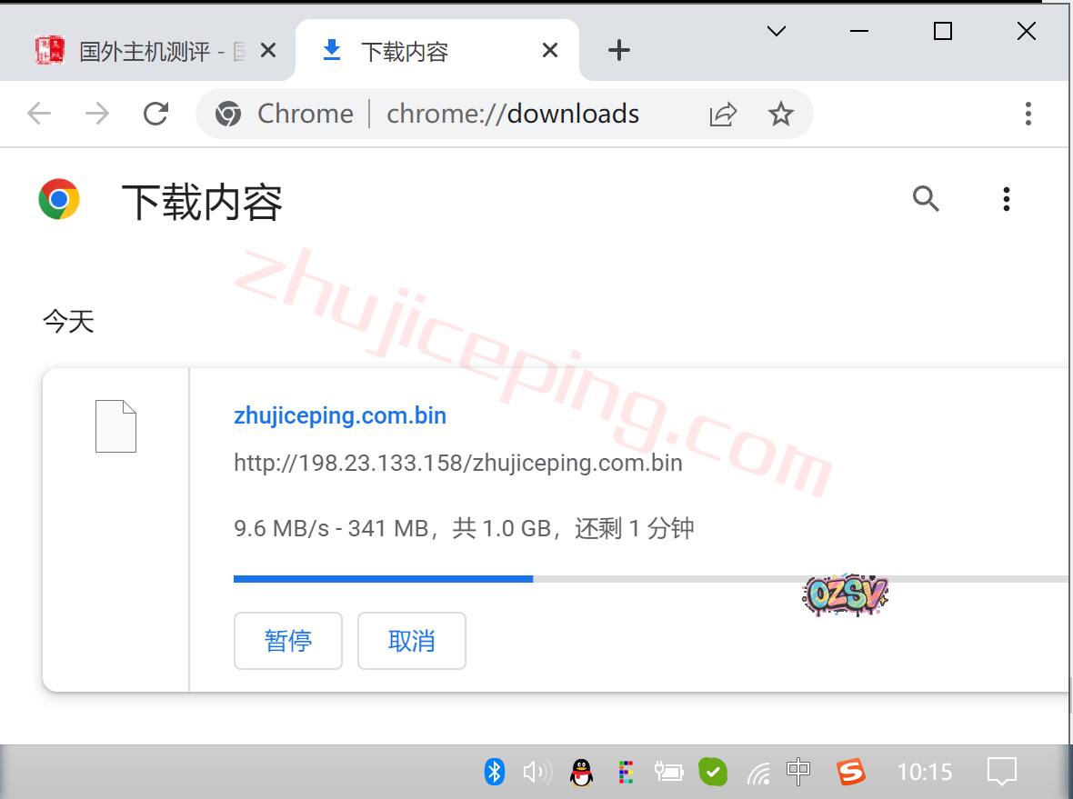 存放在测试小鸡上面的文件,广州电信家庭带宽的下载速度如下: