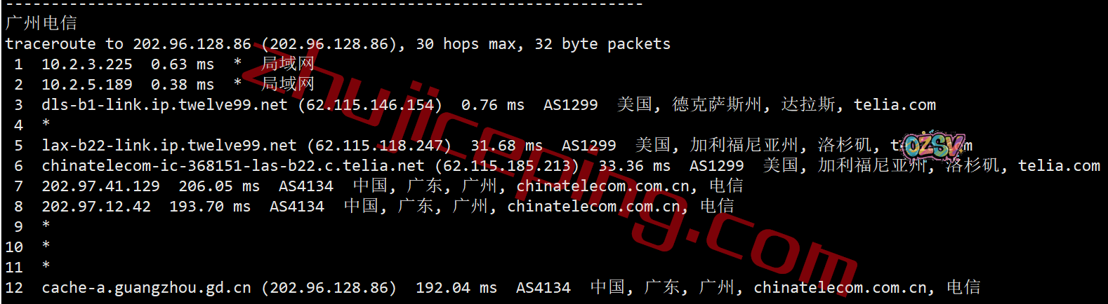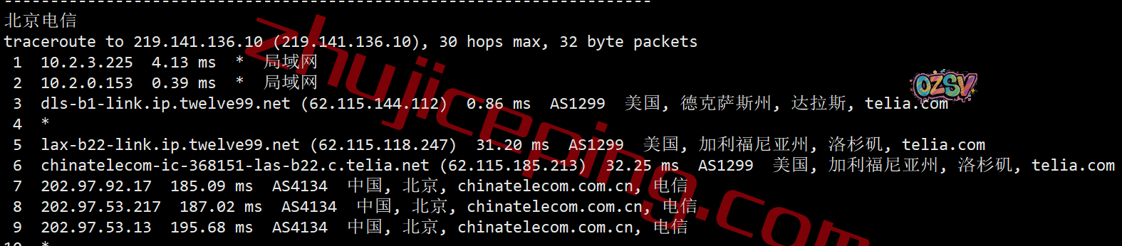 电信回程:走telia到洛杉矶,从电信与telia在洛杉矶的pop直连回国
