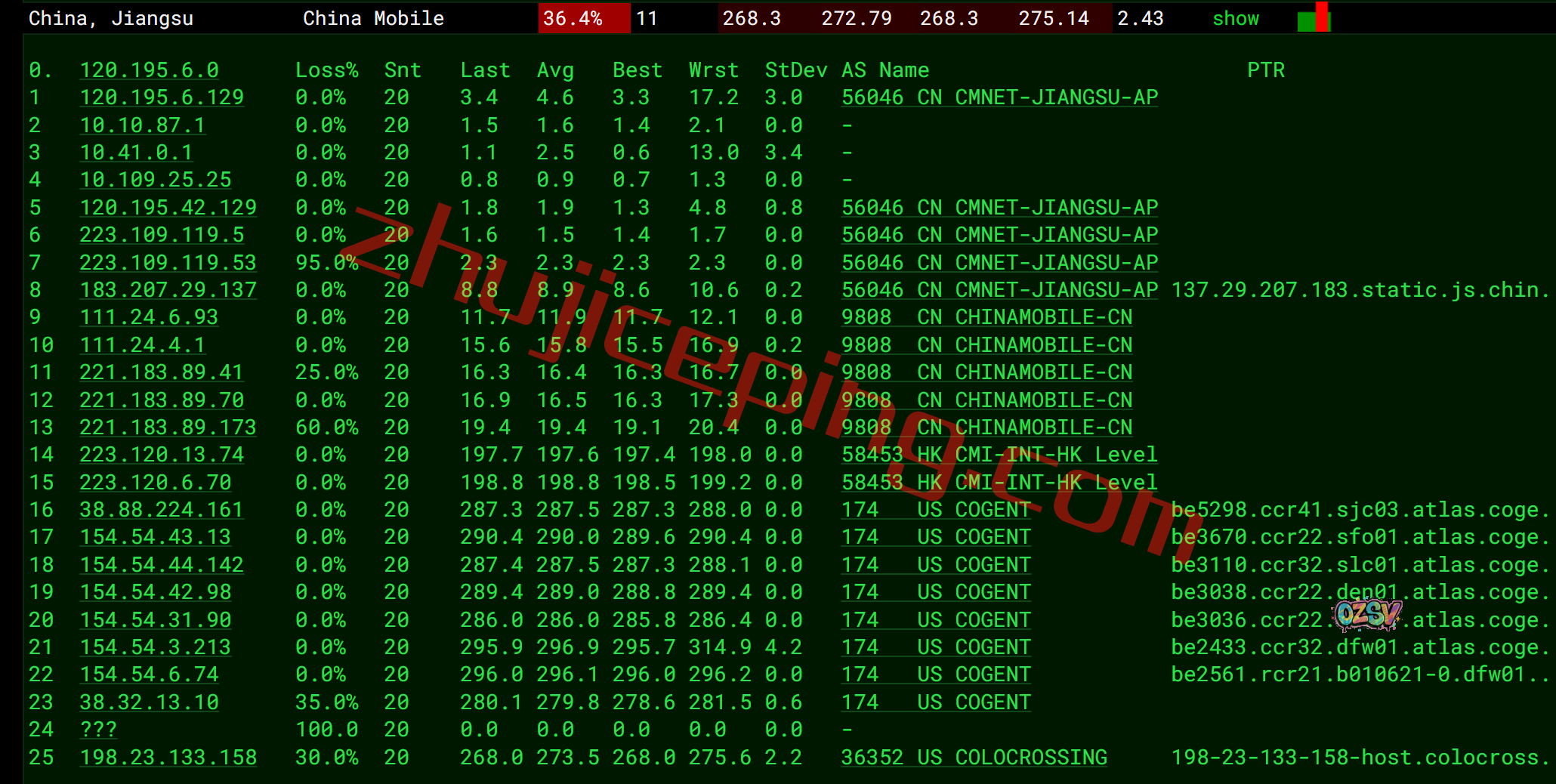 目前硬盘I/O还是不错的,CPU性能比较一般已经有一定负载了;网络这块儿,回程基本上都是走国际线路到西海岸,然后从三网在西海岸的pop直连回国,这里面联通的北京方向例外,绕道欧洲了。