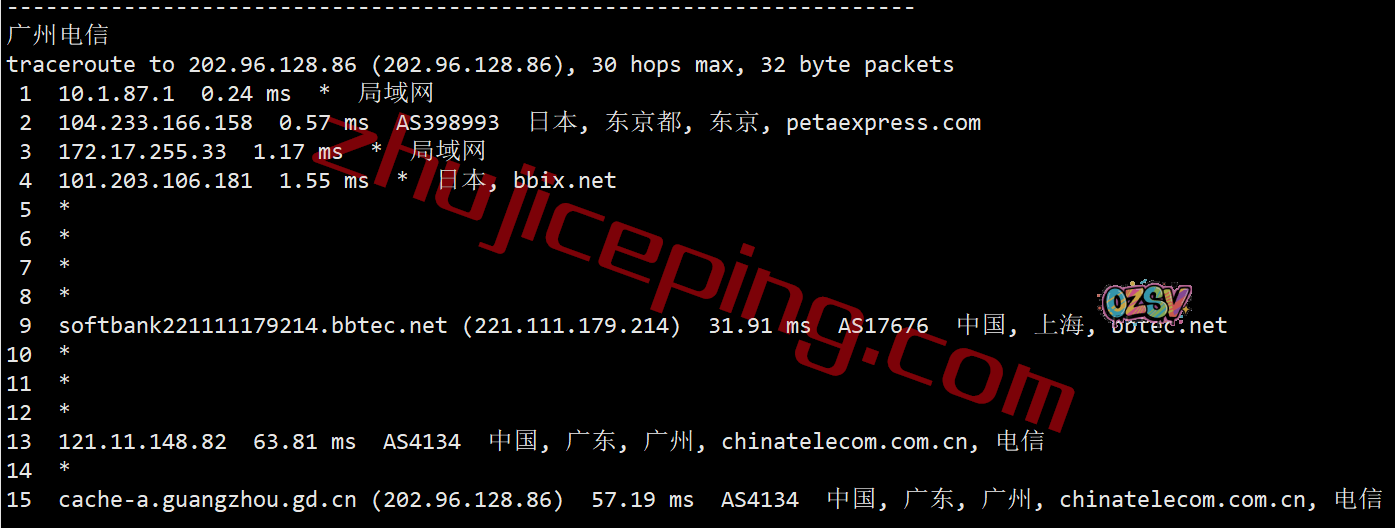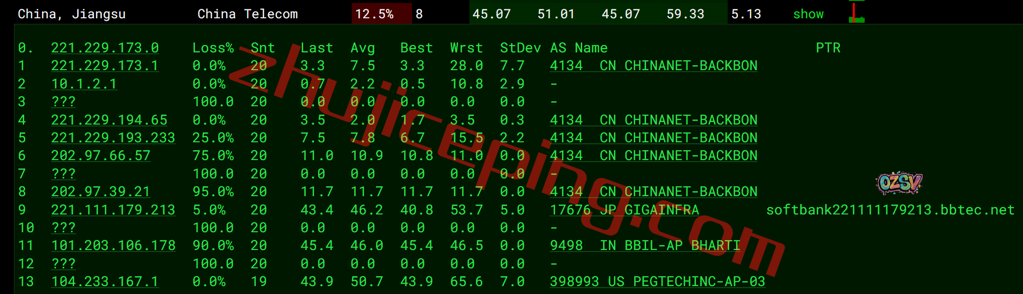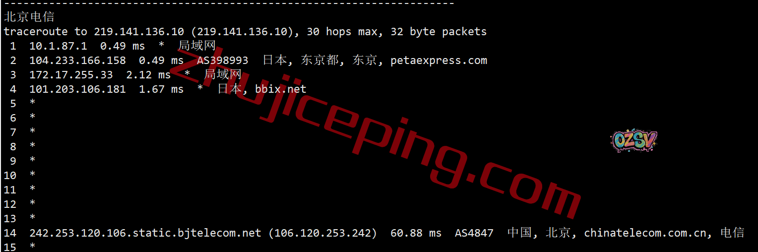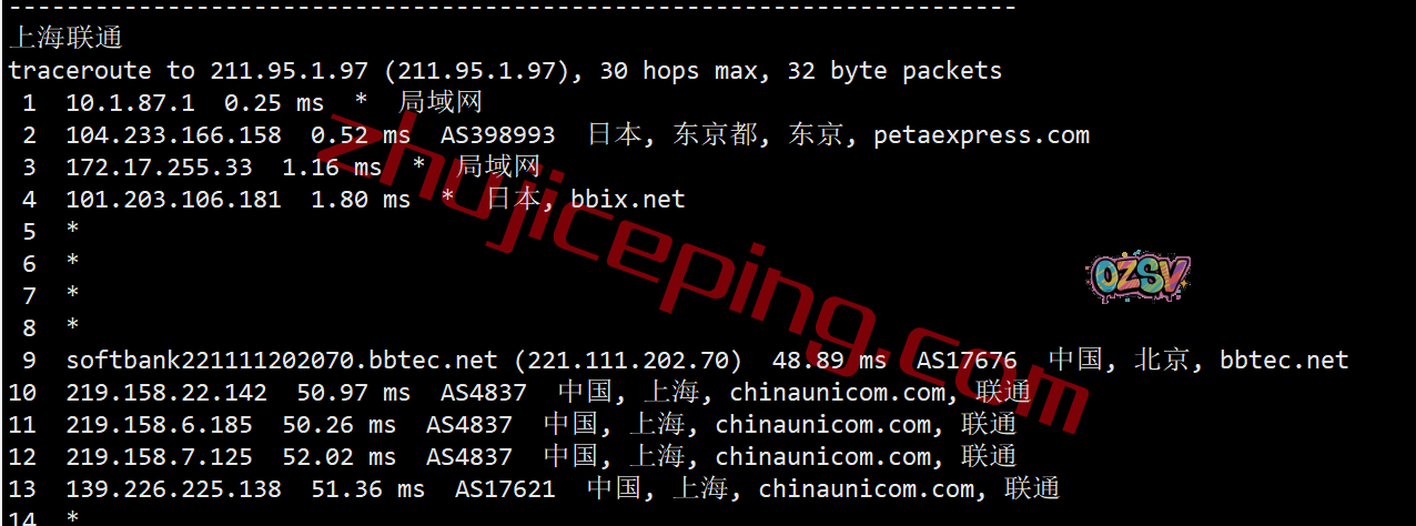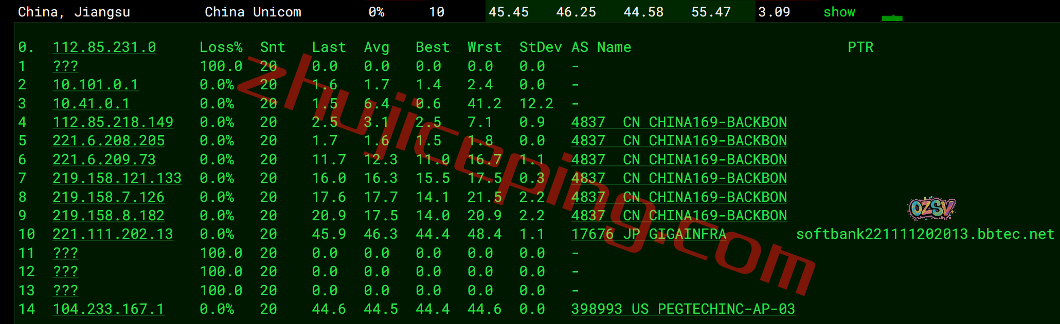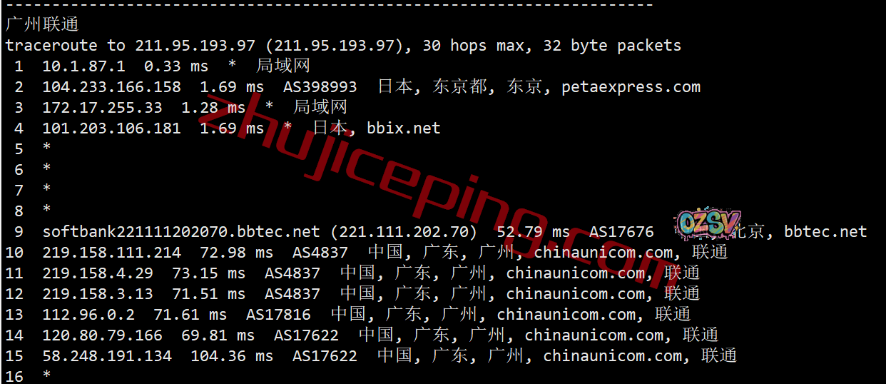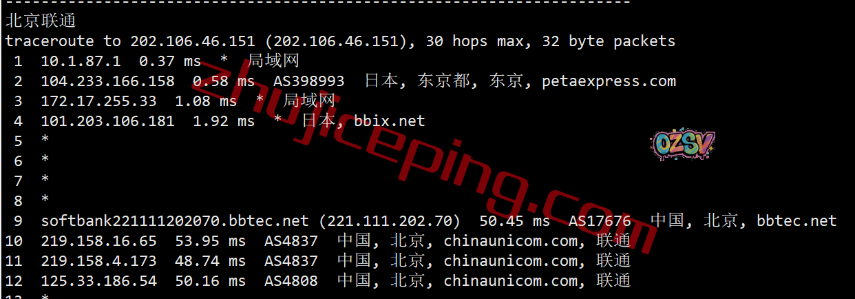 联通回程:一样是从bbix数据交换中心出来走软银回国