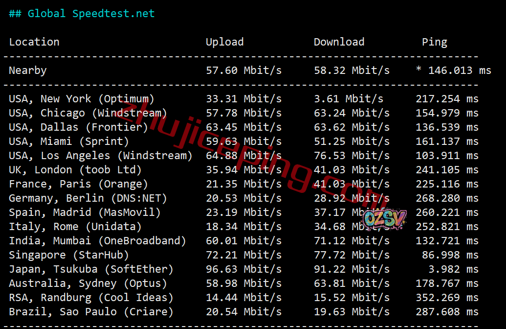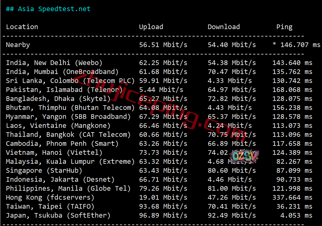 来看看国内不同地区能跑多少的上下行带宽吧,测试节点为speedtest.net在国内的多个三网不同节点:
