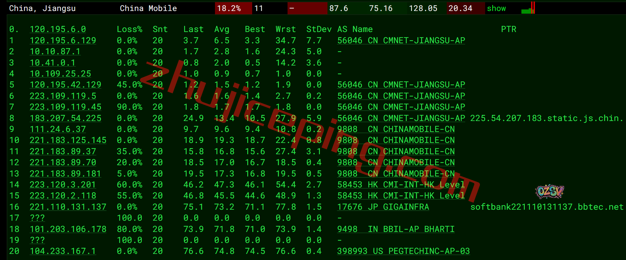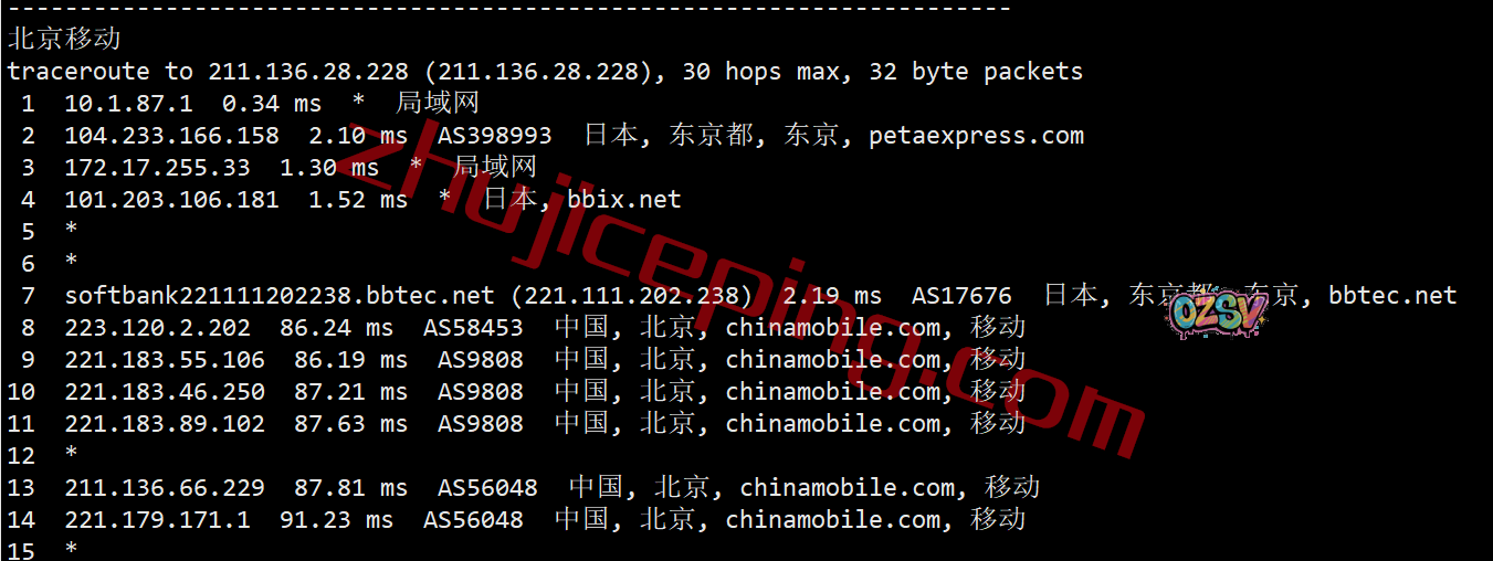 移动回程:还是从bbix数据交换中心出来走软银回国