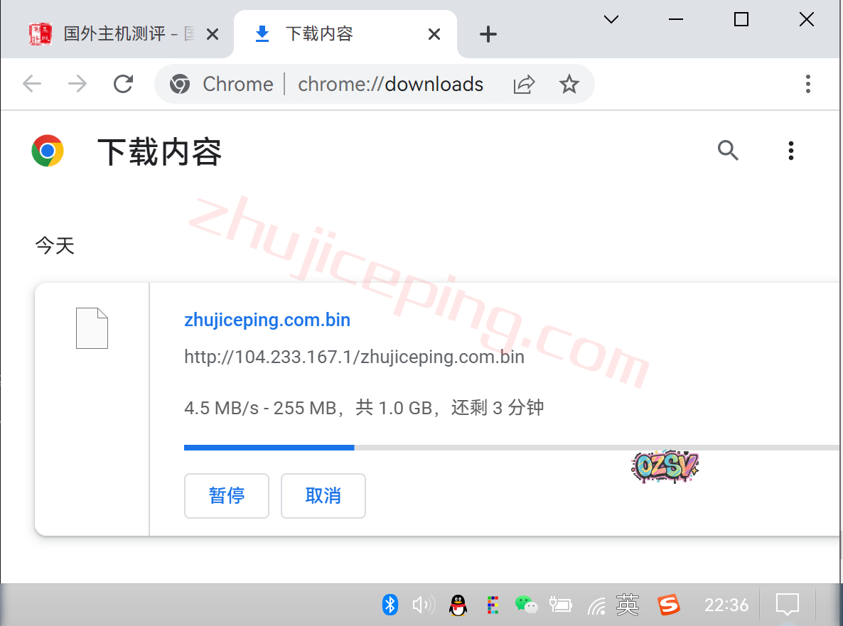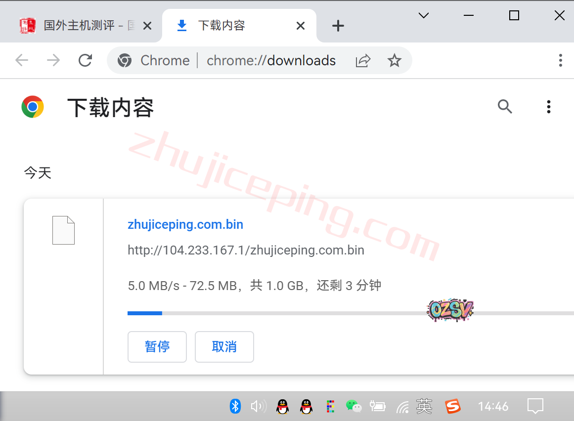 存放在测试云服务器上的文件,广州电信家庭带宽直接用浏览器下载,看看速度: