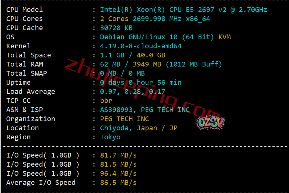 云服务器,性能不行,只能做一般的常规建站等,要抗负载就要依靠云的集群资源,这也符合云服务器的原始定义。网络方面,目前测试的结果来看,相当于是三网的去程和回程都是走的软银线路,这种国际BGP线路看起来还是蛮不错的,至少要摔日本NTT八千里啊。