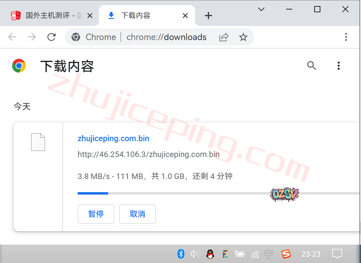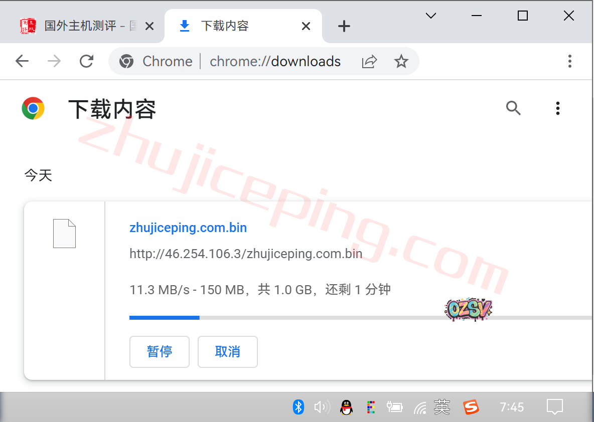 存放在测试小鸡上面的文件,广州电信家庭带宽直接浏览器下载,看速度: