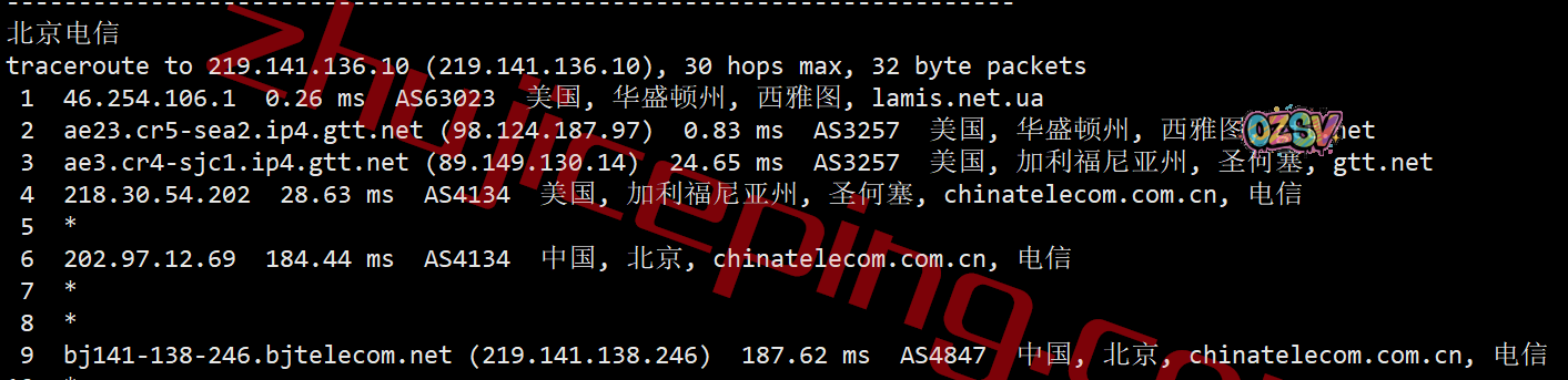 电信去程:直连电信圣何塞节点然后走GTT去西雅图
