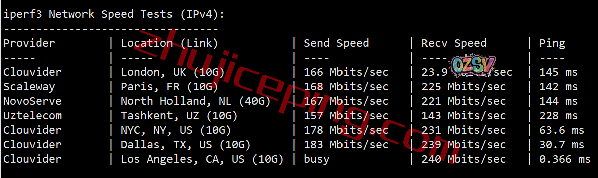 iperf3测试几个欧美节点的数据: