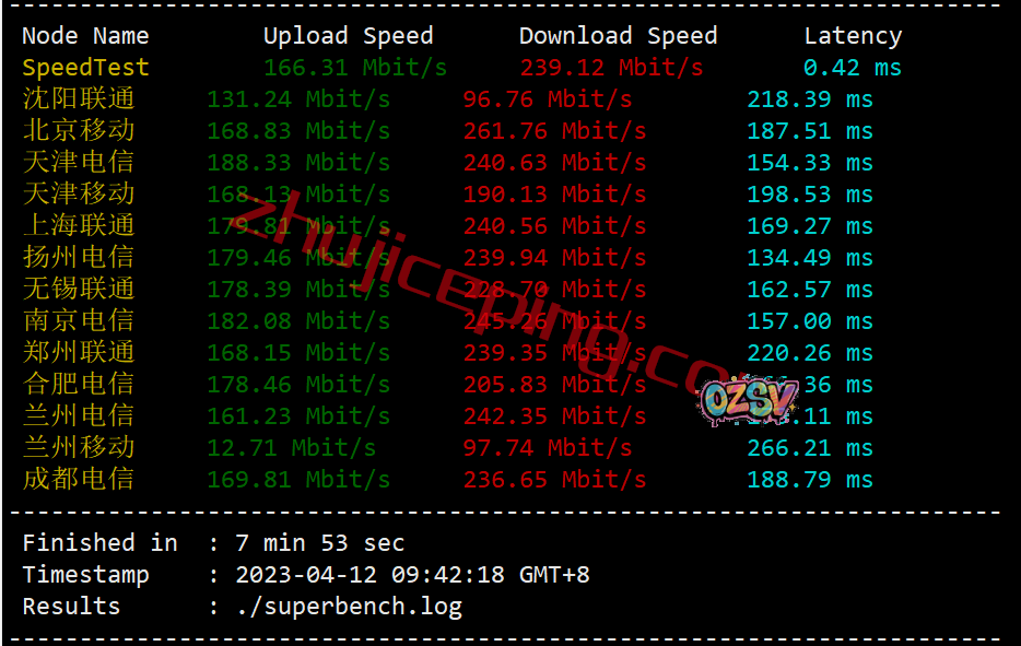 用speedtest的国内三网节点跑一下,看看上下行能冲到多少?大致数据: