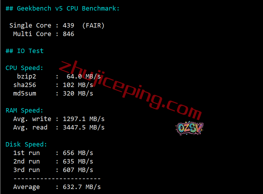 VPS性能测试,大致数据如下: