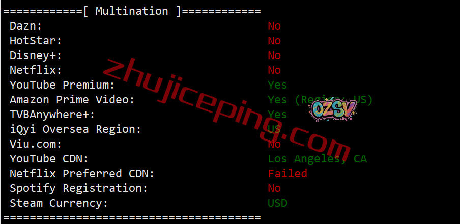 部分北美流媒体解锁测试结果:
