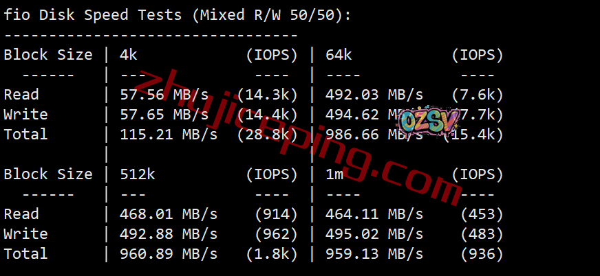 FIO测试下硬盘读写,大致数据如下: