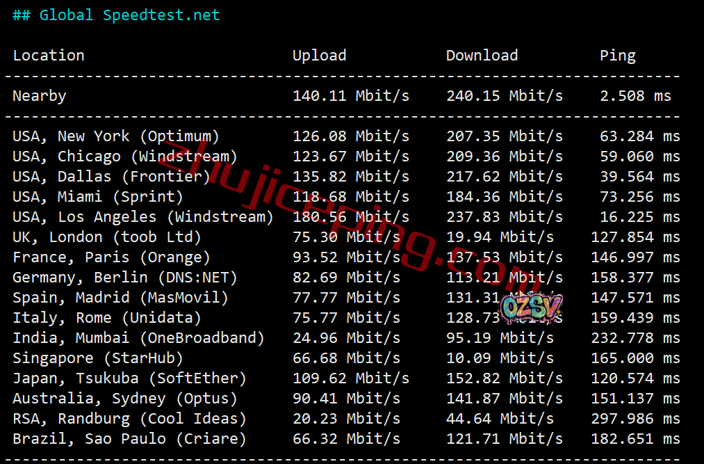 跑几个speedtest的国际节点看看效果: