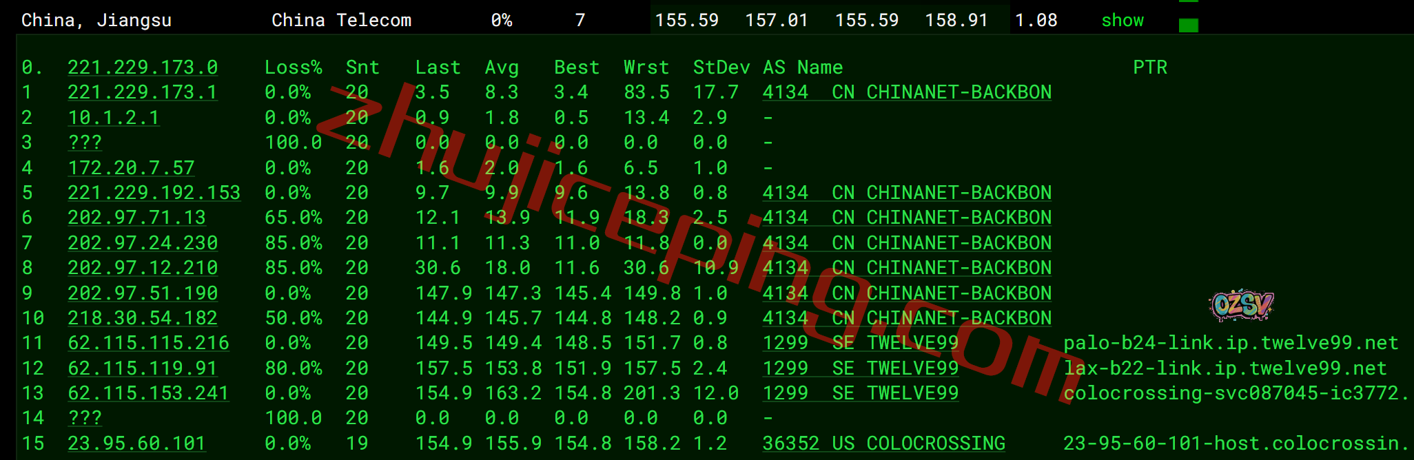 电信去程:直连电信圣何塞节点后走twelve99去洛杉矶机房
