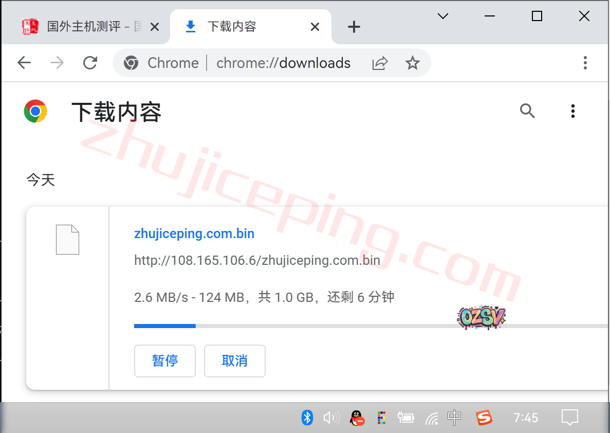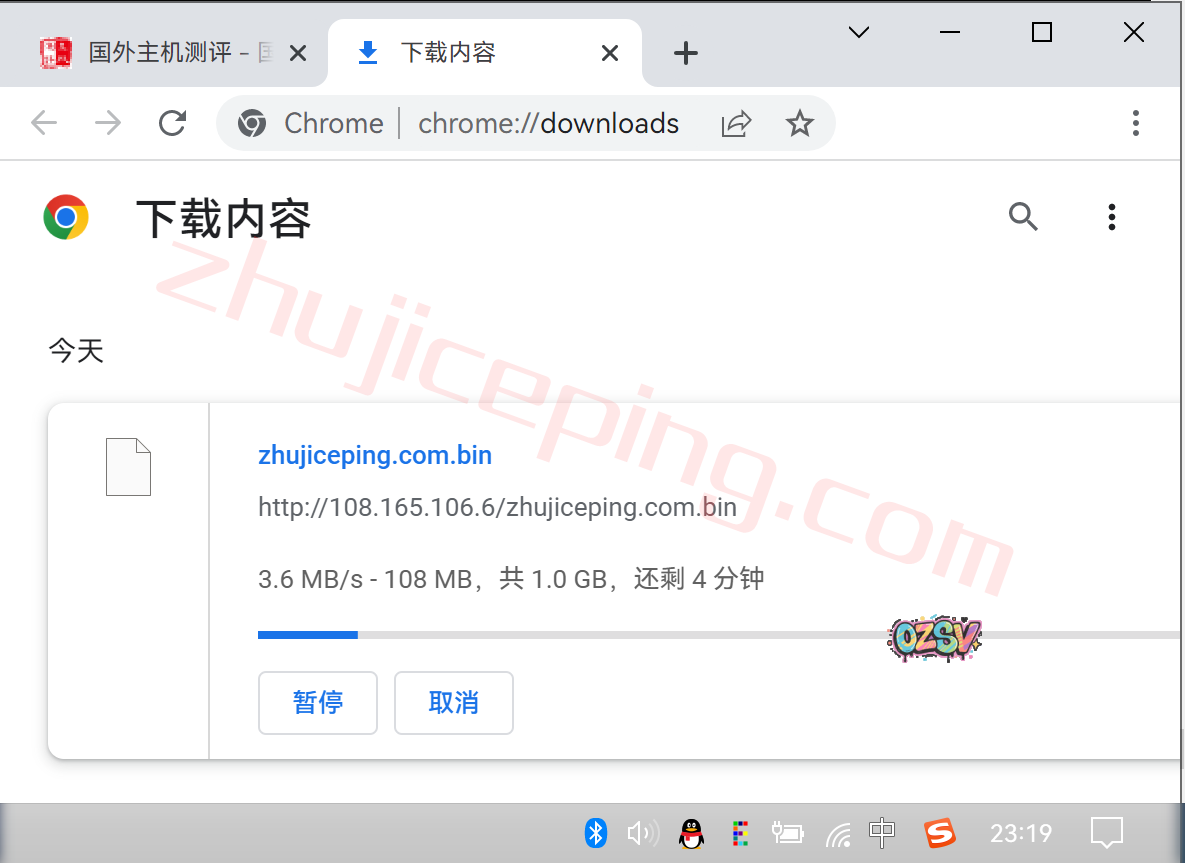 存放在测试小鸡上面的文件,广州电信家庭带宽直接用浏览器下载,大致数据: