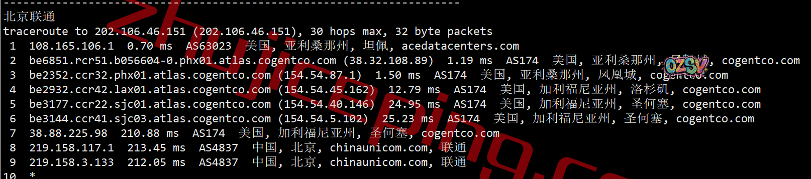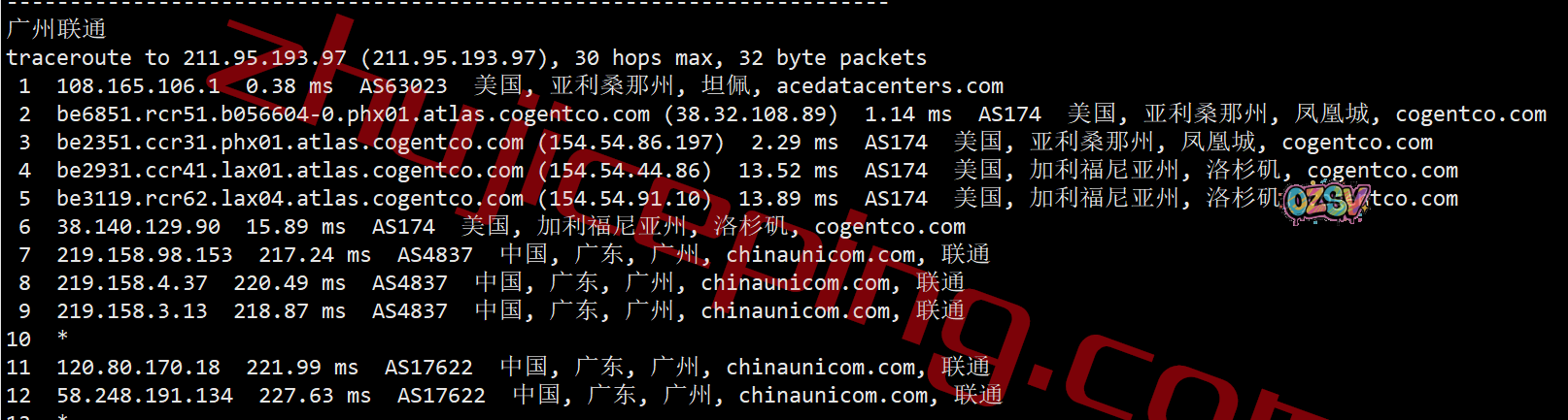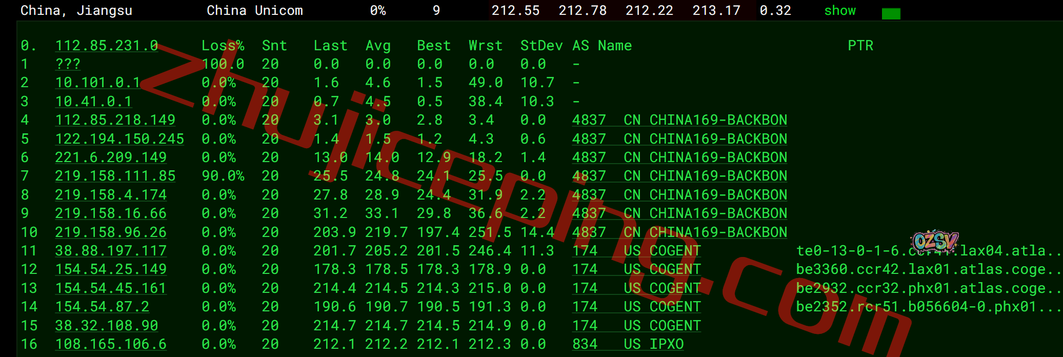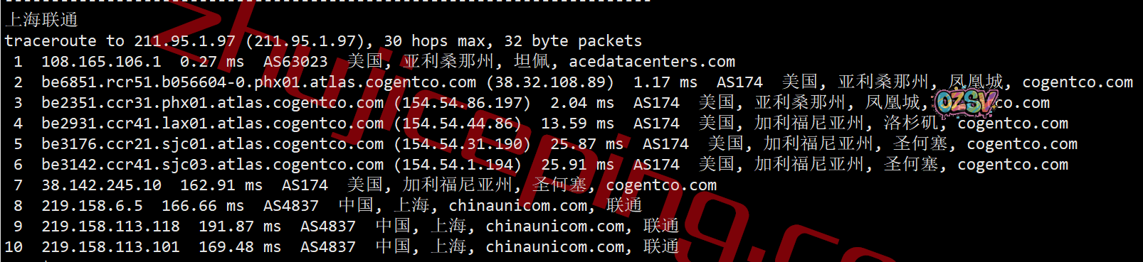 联通去程:直连联通洛杉矶节点然后接cogent去凤凰城
