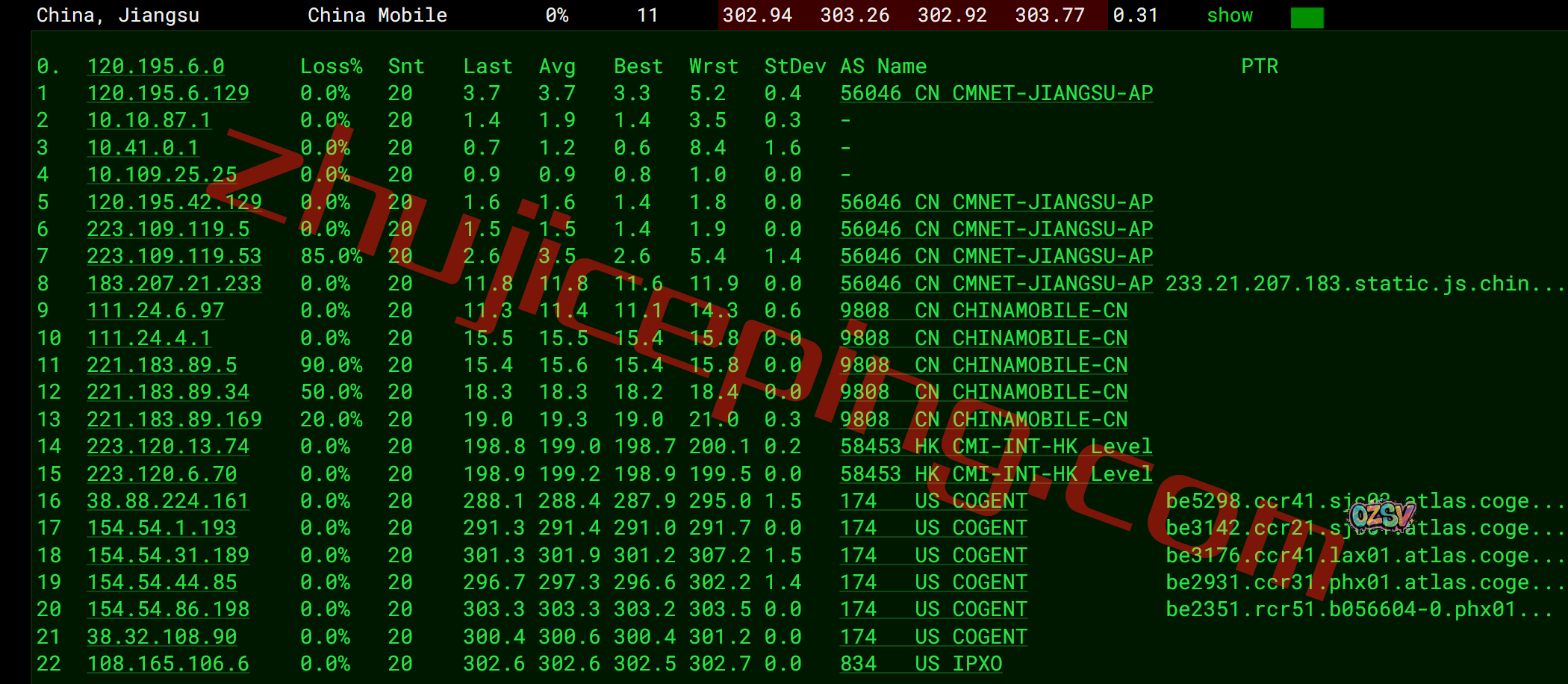 移动回程:走cogent到洛杉矶/圣何塞,从移动在洛杉矶/圣何塞的节点直连回国