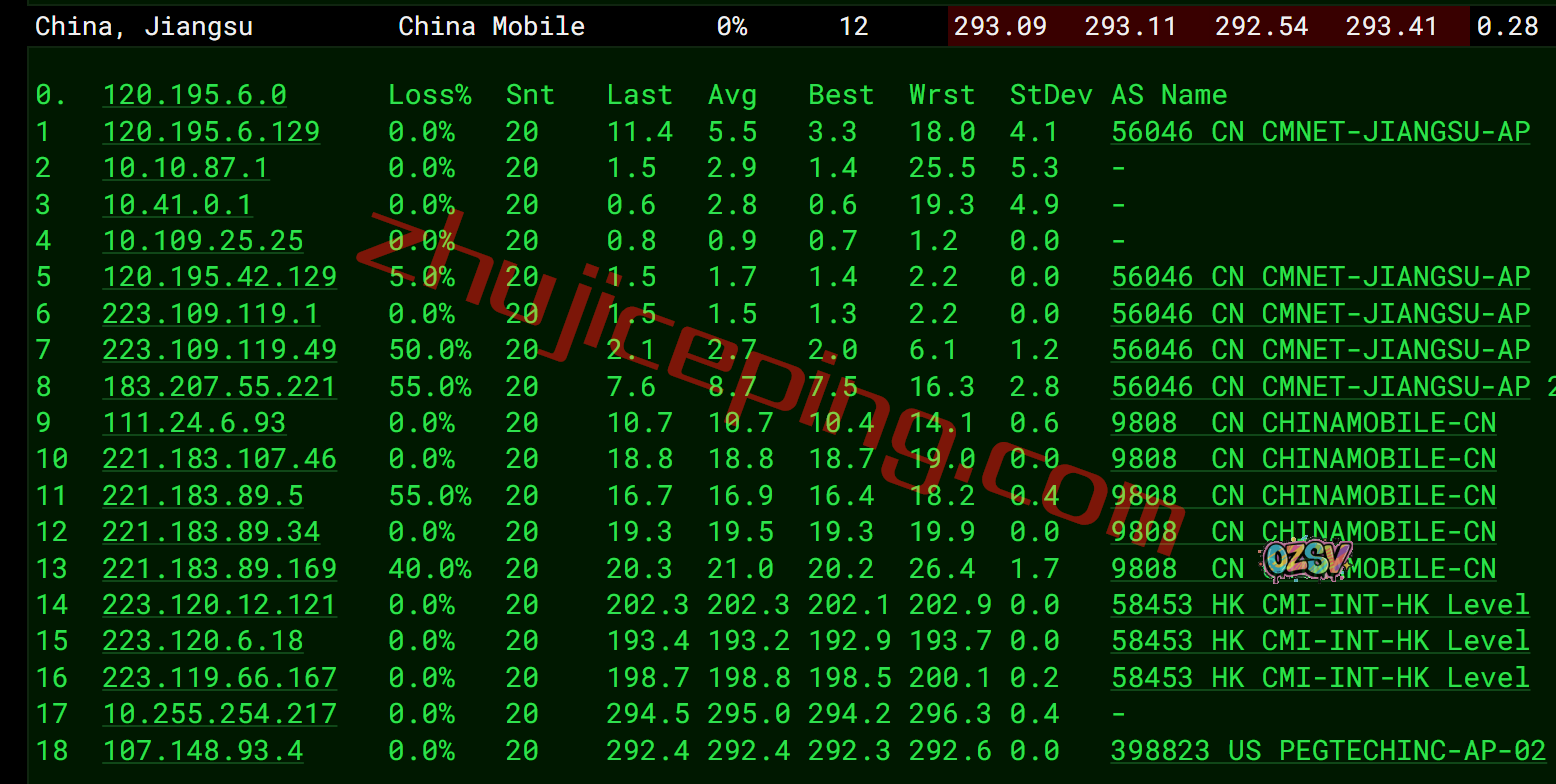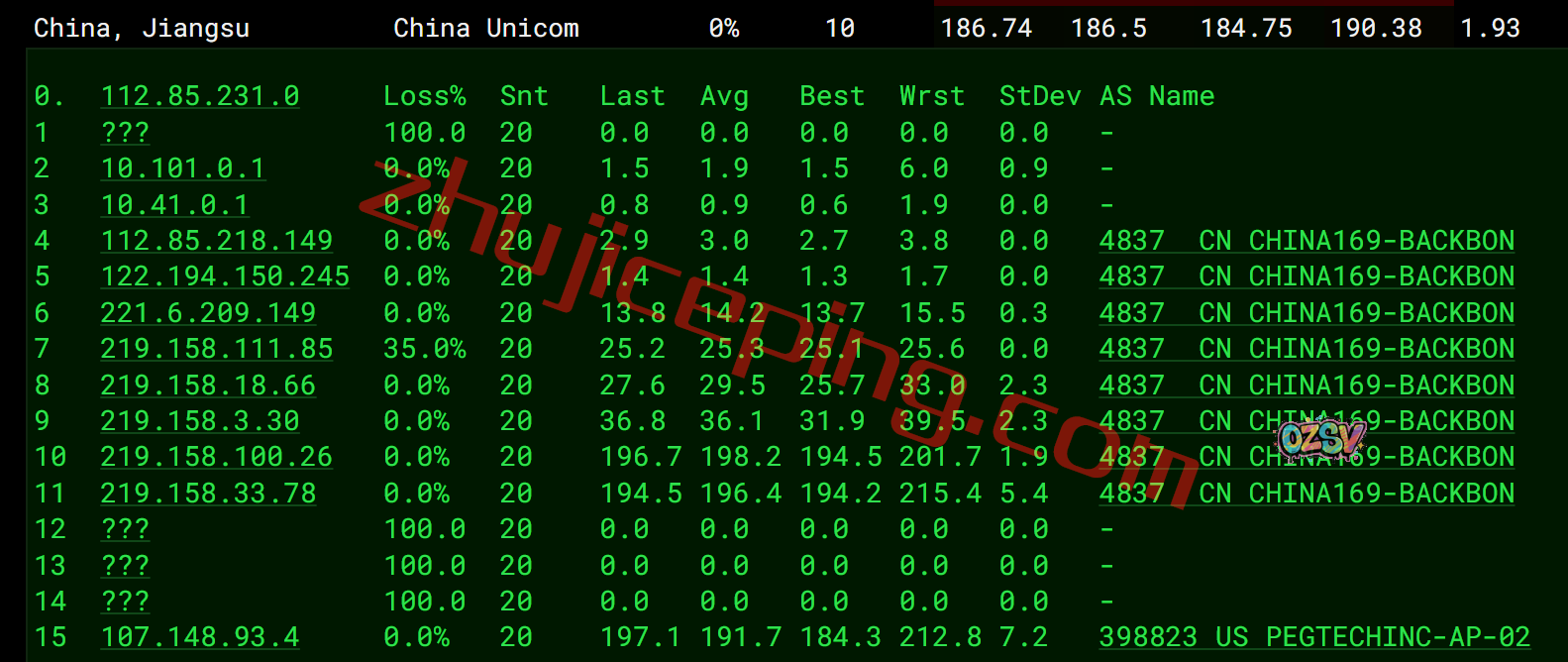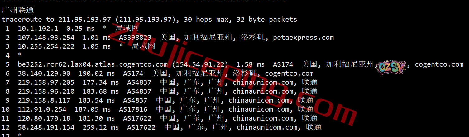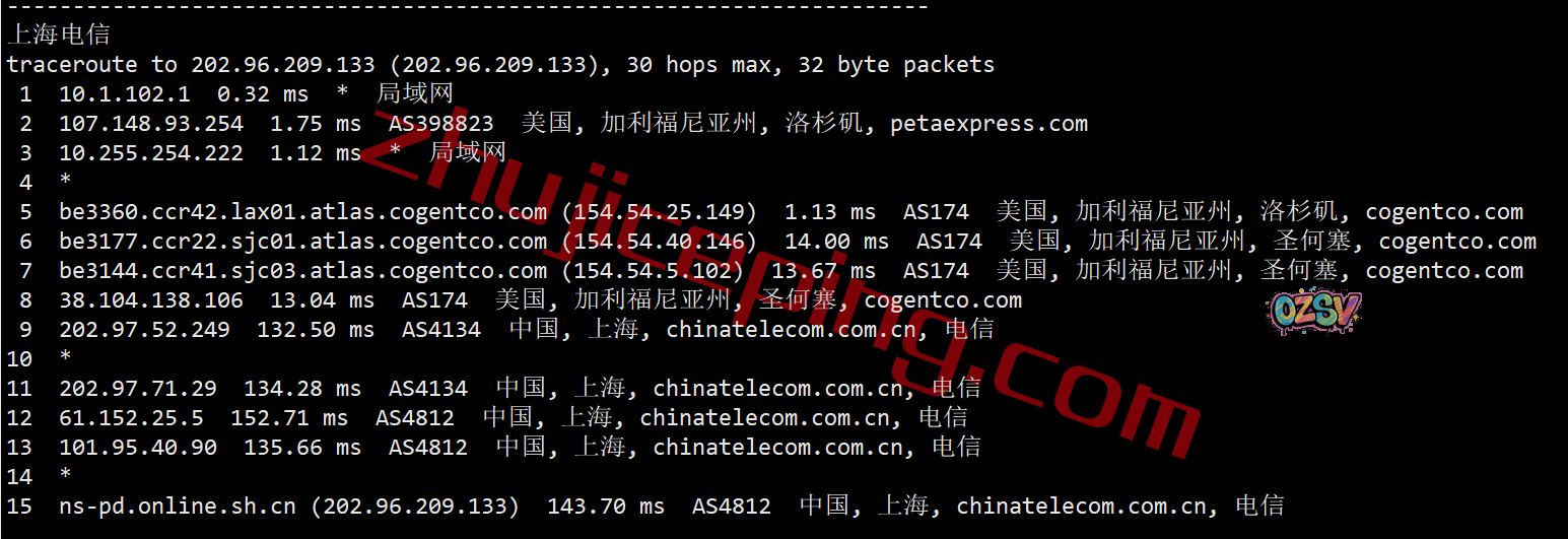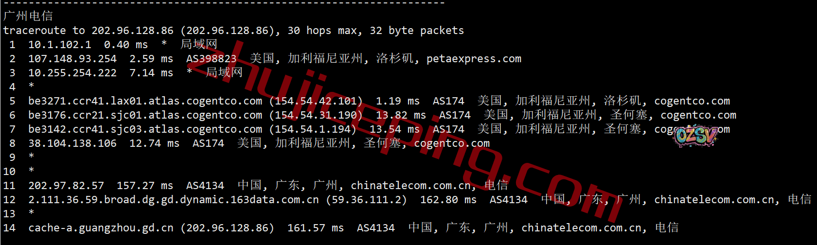 北京、上海方向:走cogent接移动洛杉矶/圣何塞节点后直连回国