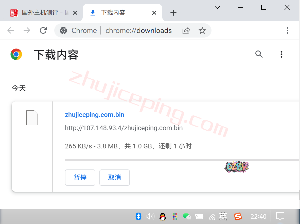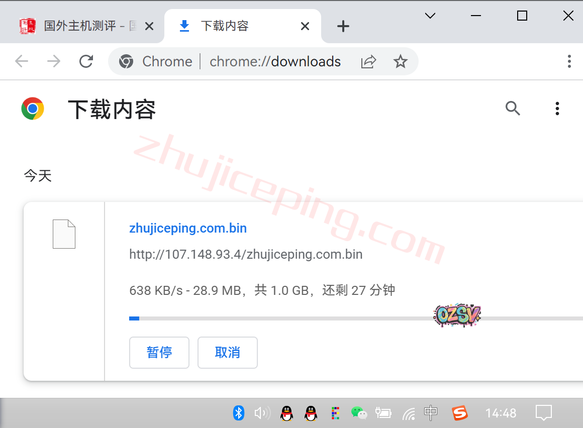存放在测试小鸡上面的文件,广州电信家庭带宽,直接浏览器下载,速度如下: