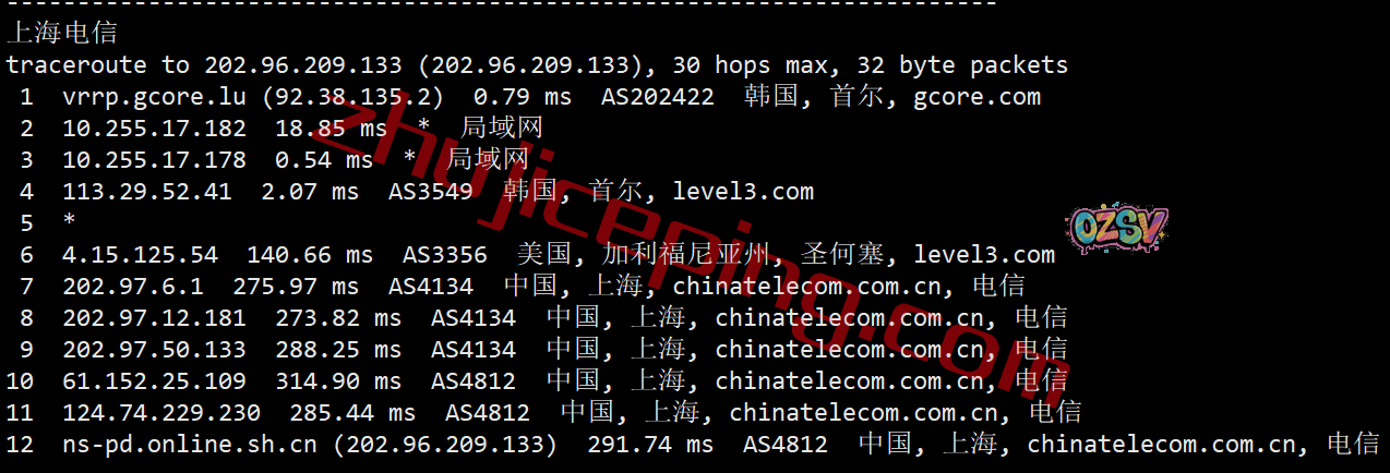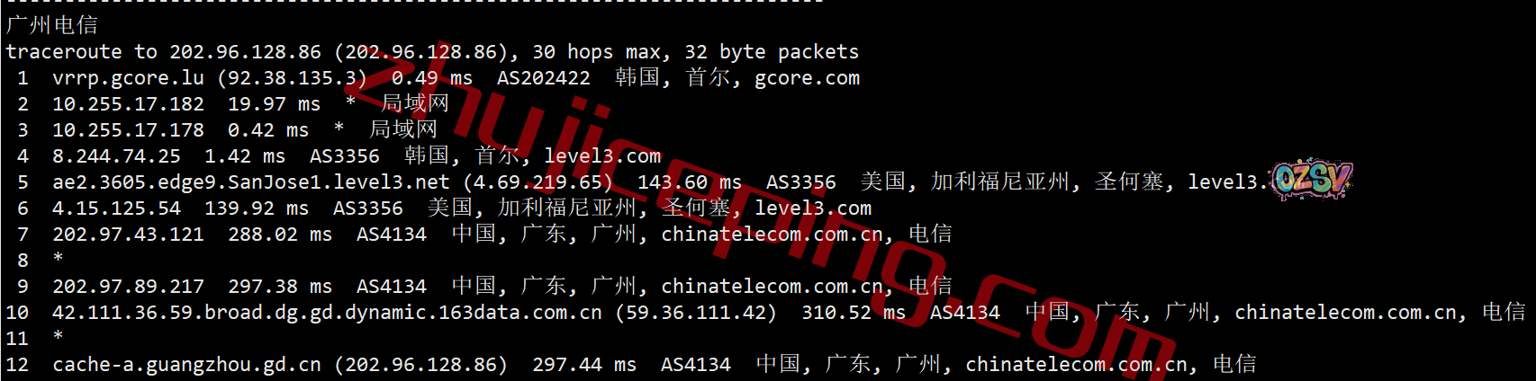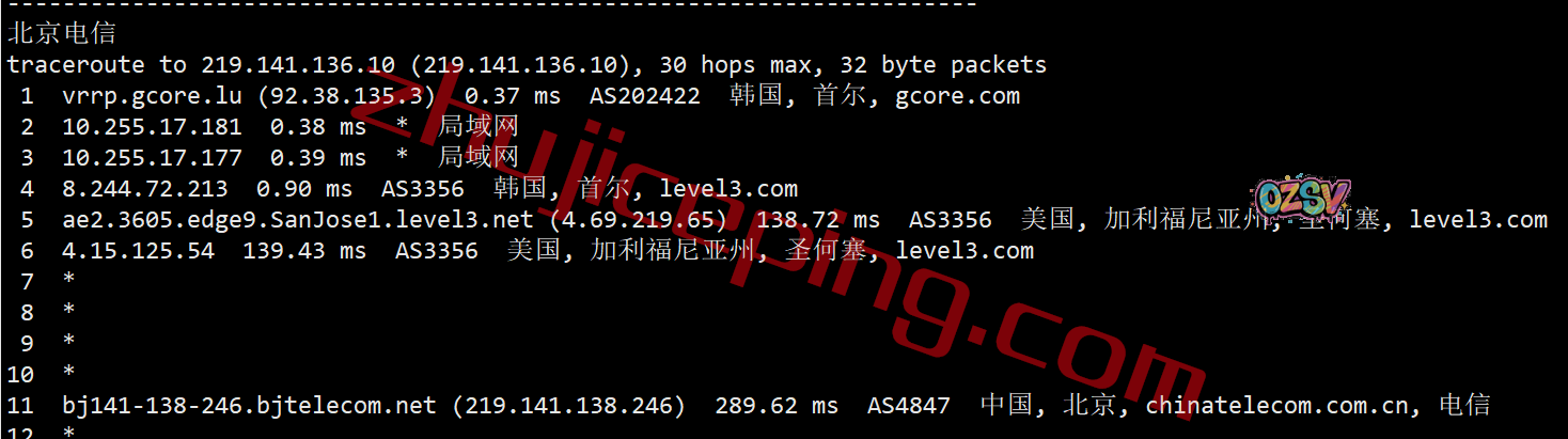 电信去程:直连电信圣何塞节点,然后走level3再回韩国