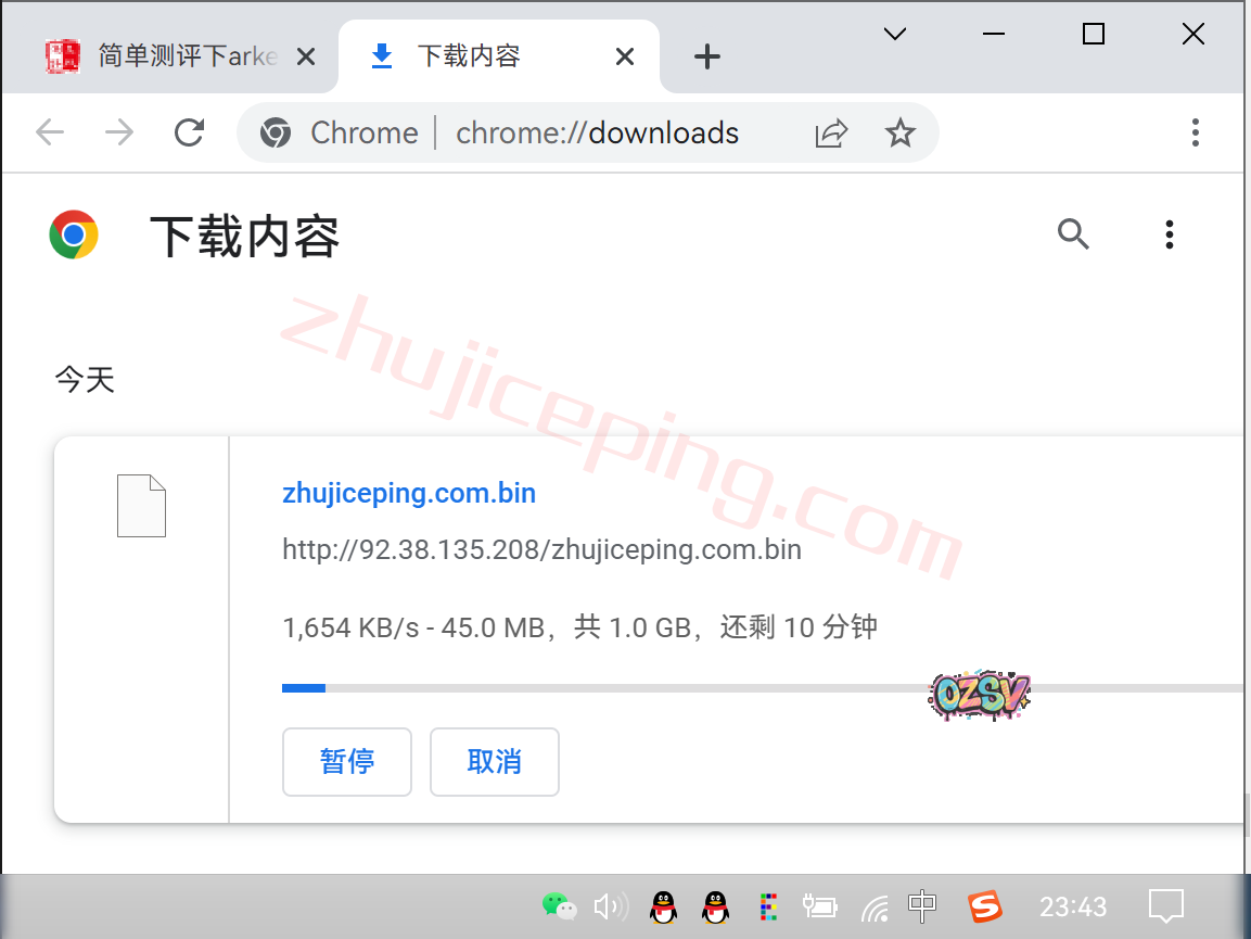 存放在测试小机上面的文件,广州电信家庭带宽直接用浏览器下载,看看速度: