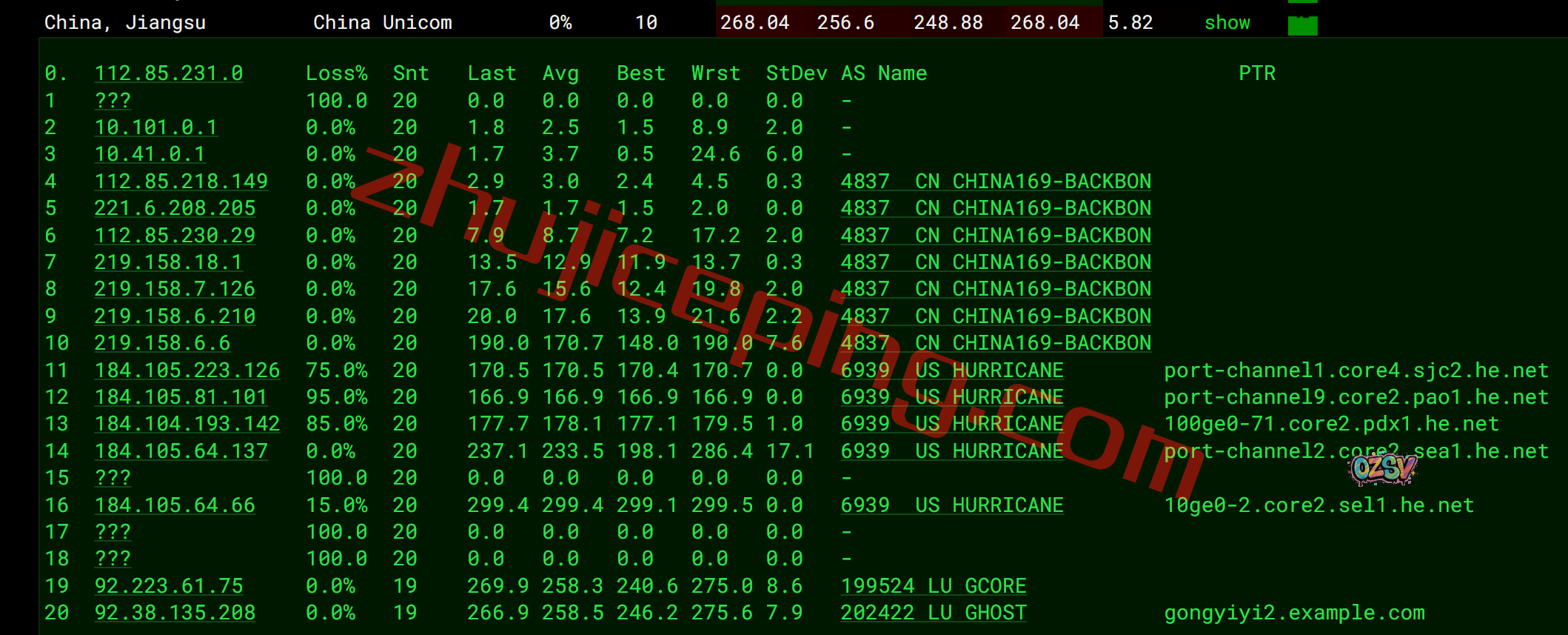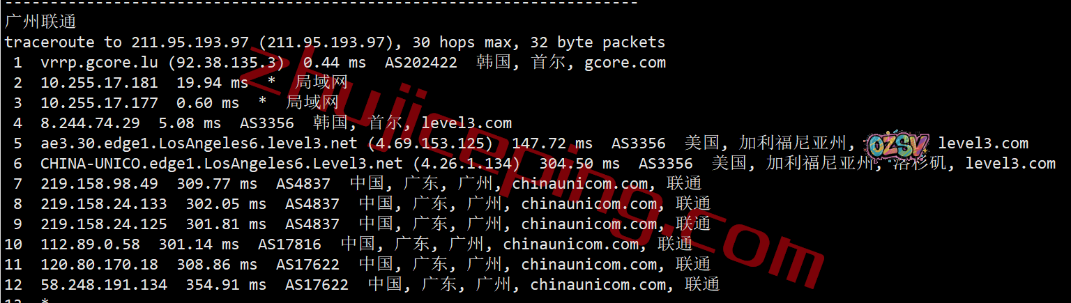 联通去程:直连联通圣何塞节点然后走HE.NET回韩国