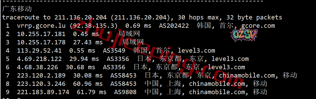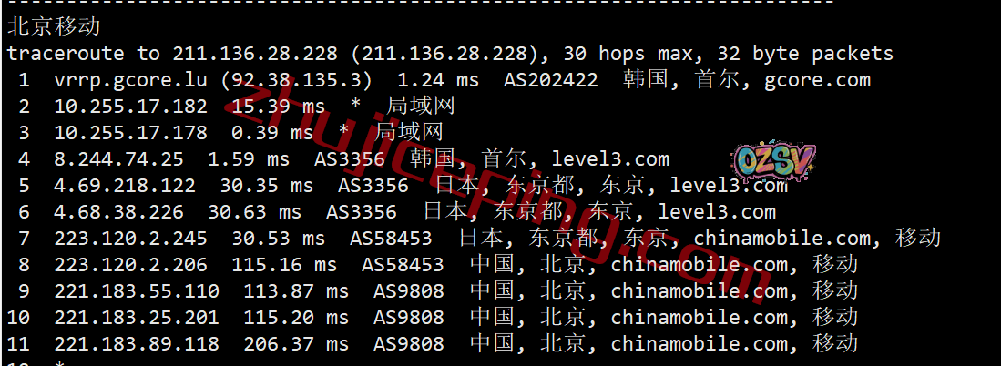 移动回程:走level3去日本,然后从移动东京节点直连回国