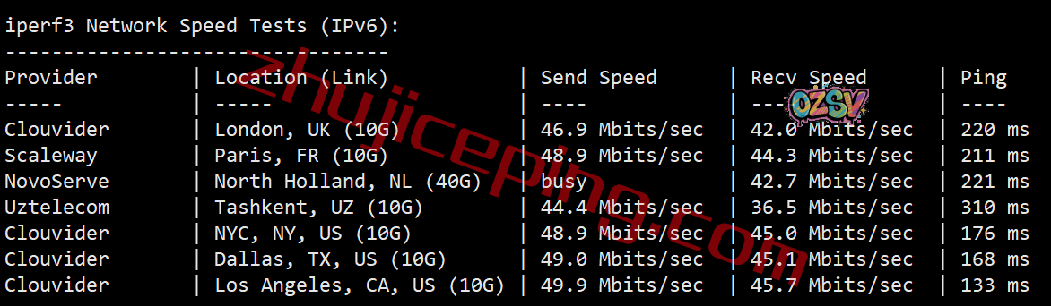 还是iperf3,只不过换成了IPv6环境下的测试: