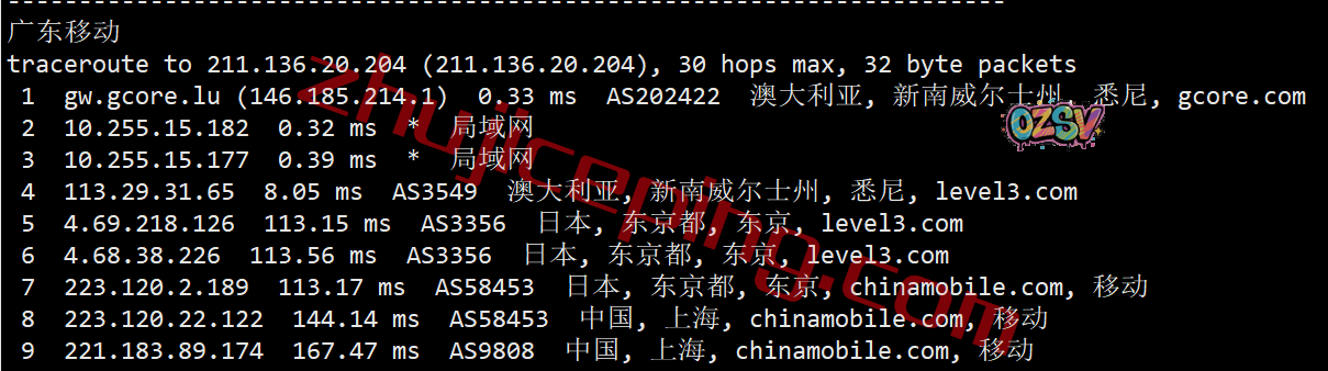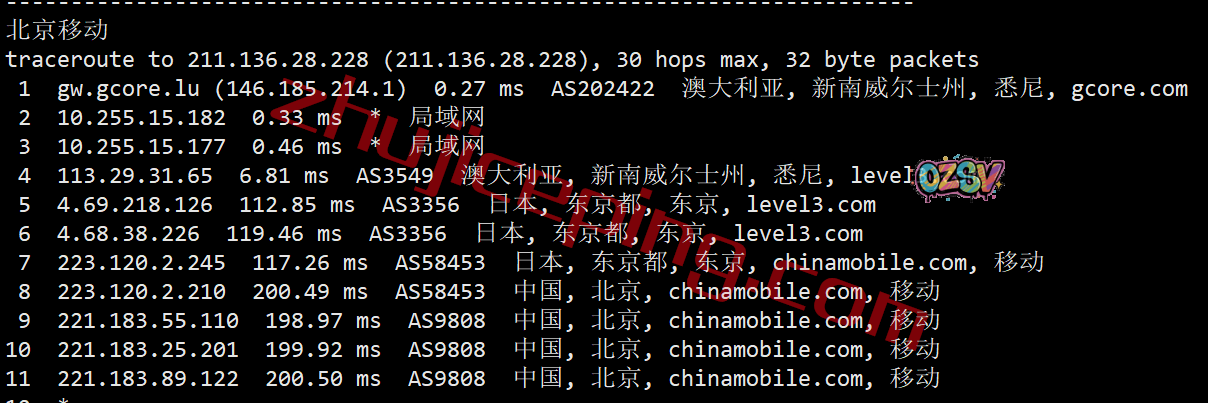 移动回程:走level3到东京,从移动日本东京节点直连回国