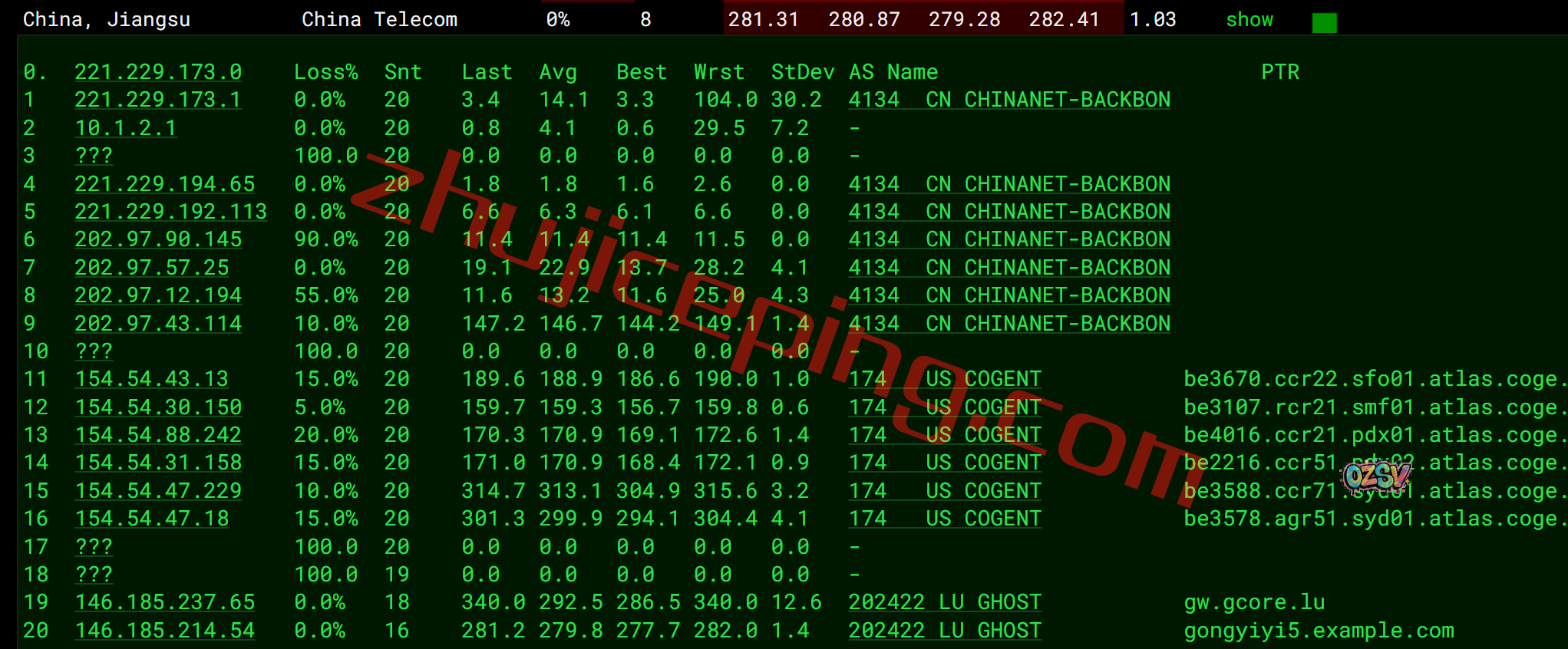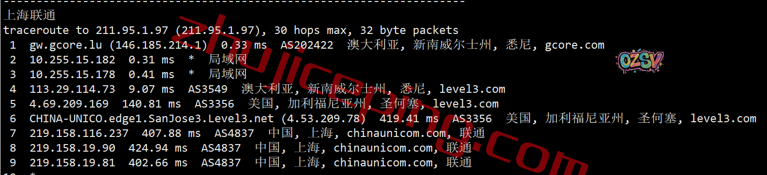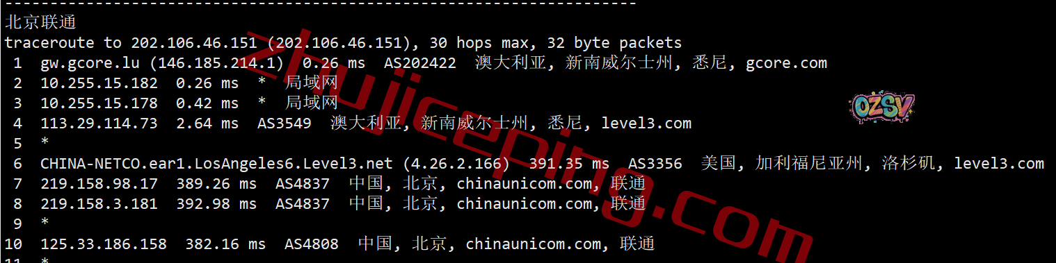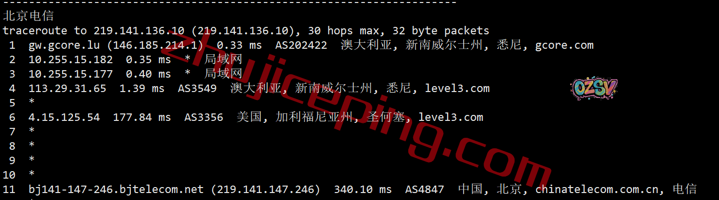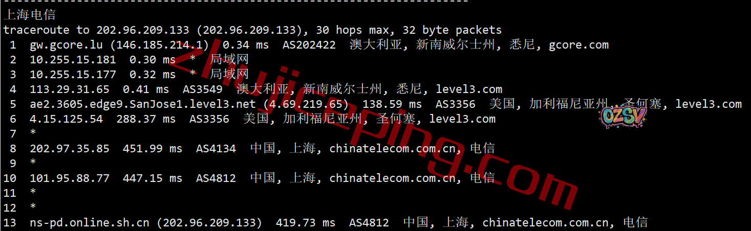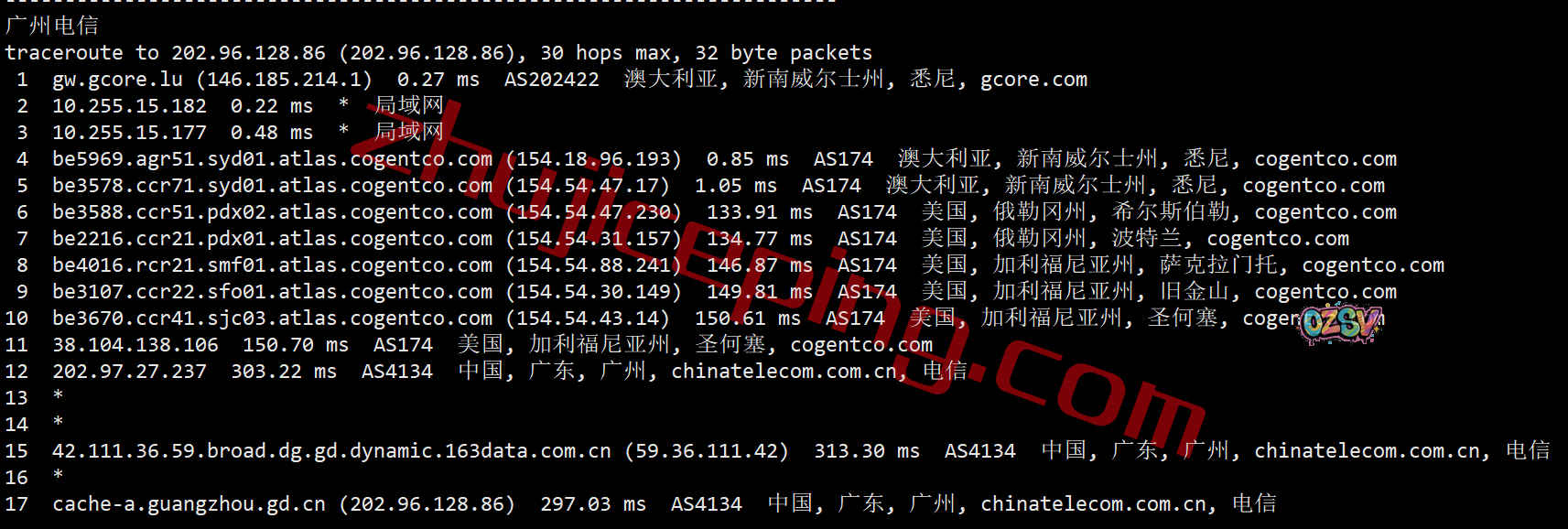 电信去程:直连电信圣何塞节点,然后走cogent返回澳大利亚
