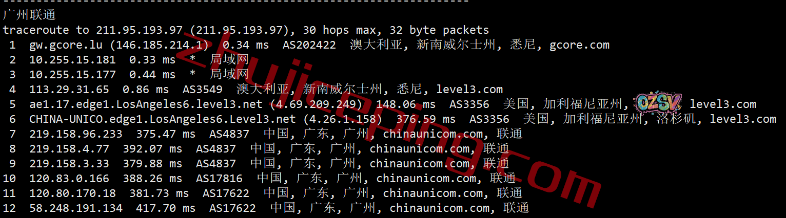 广州方向:走cogent到美国西海岸再回国,纯国际线路