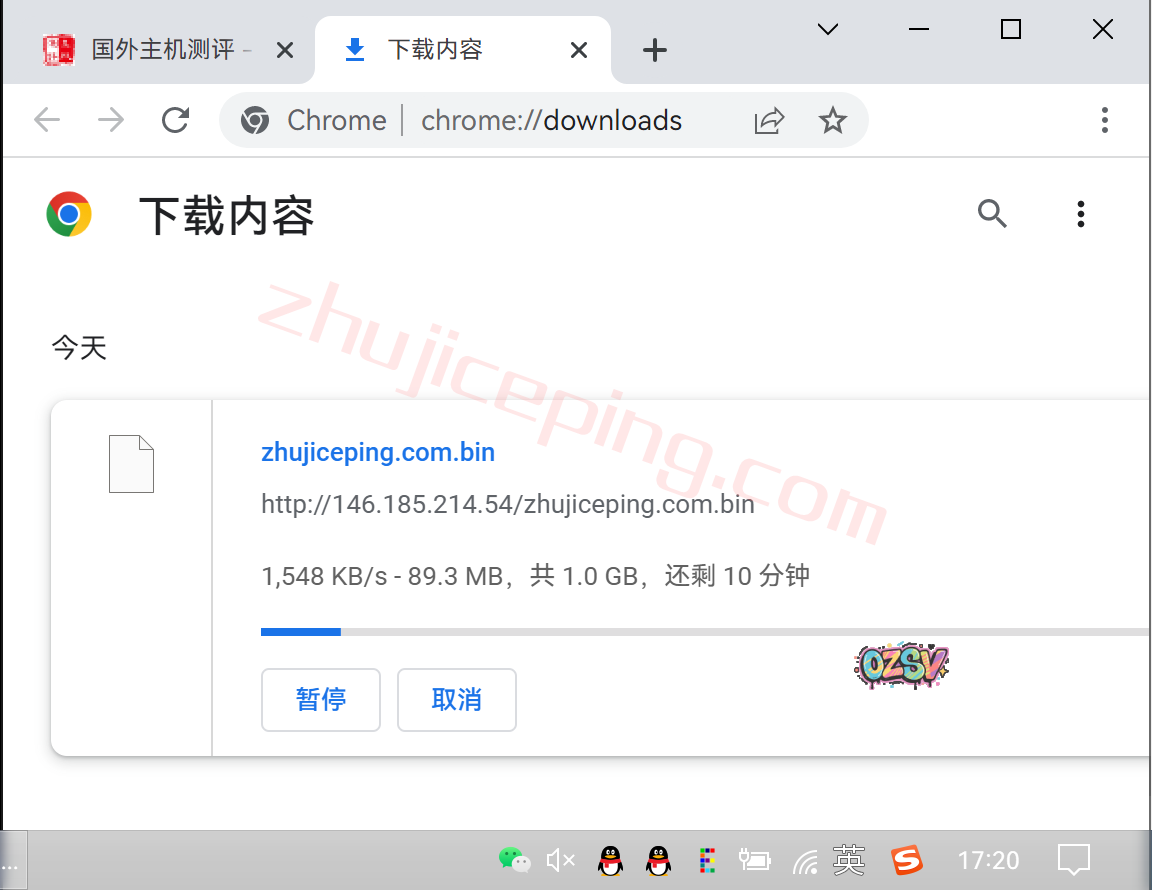 存放在测试小计上面的文件,广州电信家庭带宽,直接用浏览器下载,大致速度如下: