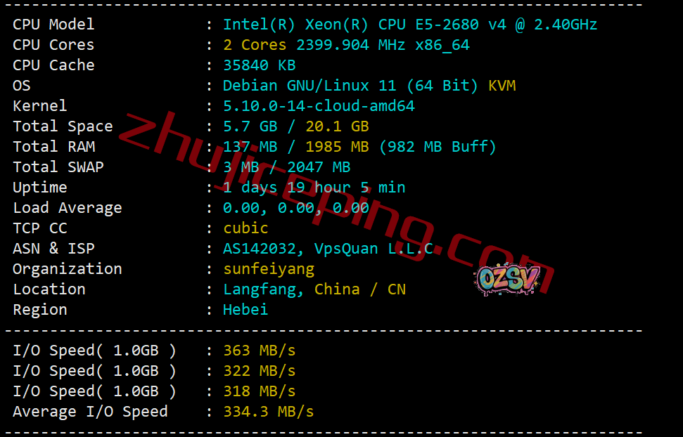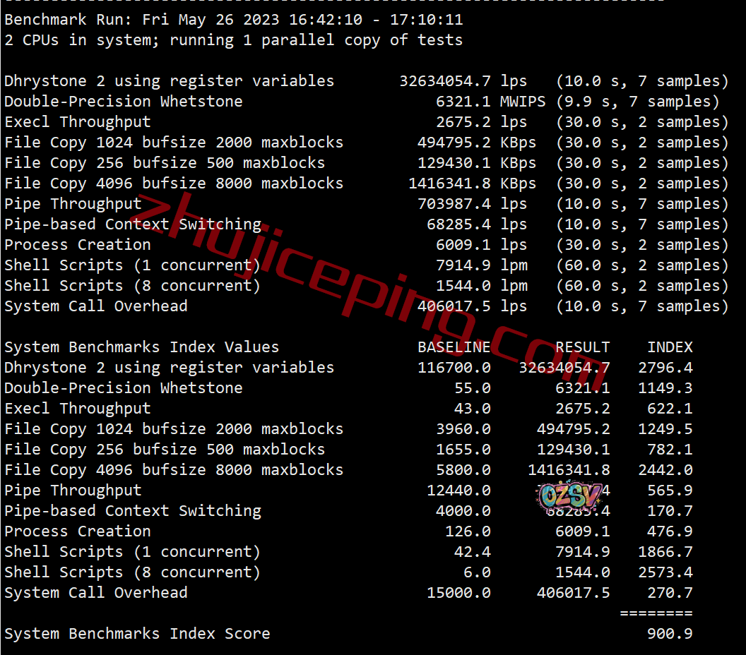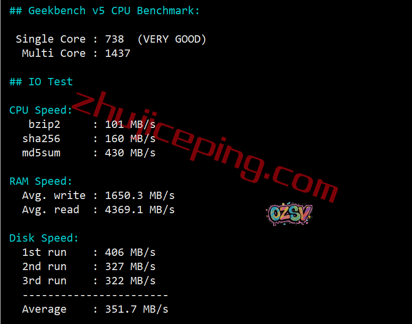 当前来看,VPS性能还是相当给力的,尤其是CPU跑分,这说明负载不高;