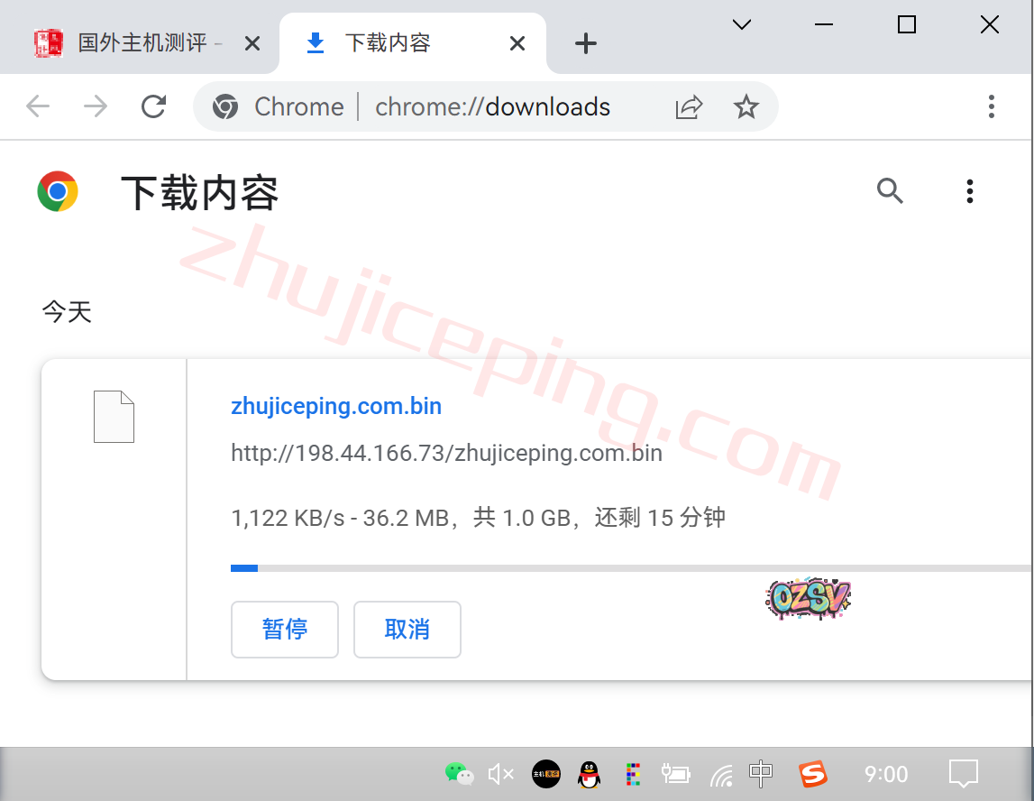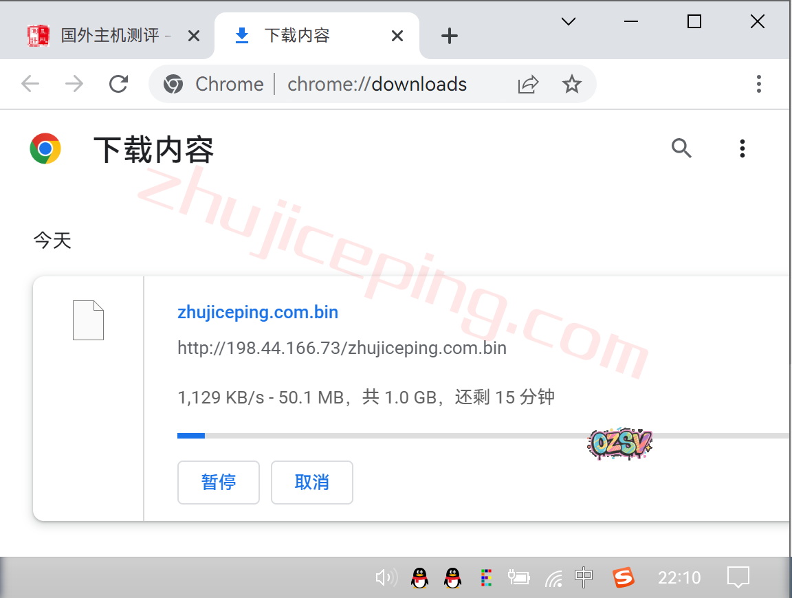 存放在测试小鸡上面的文件,广州电信家庭带宽直接用浏览器下载,大致速度如下: