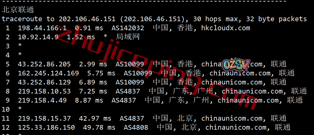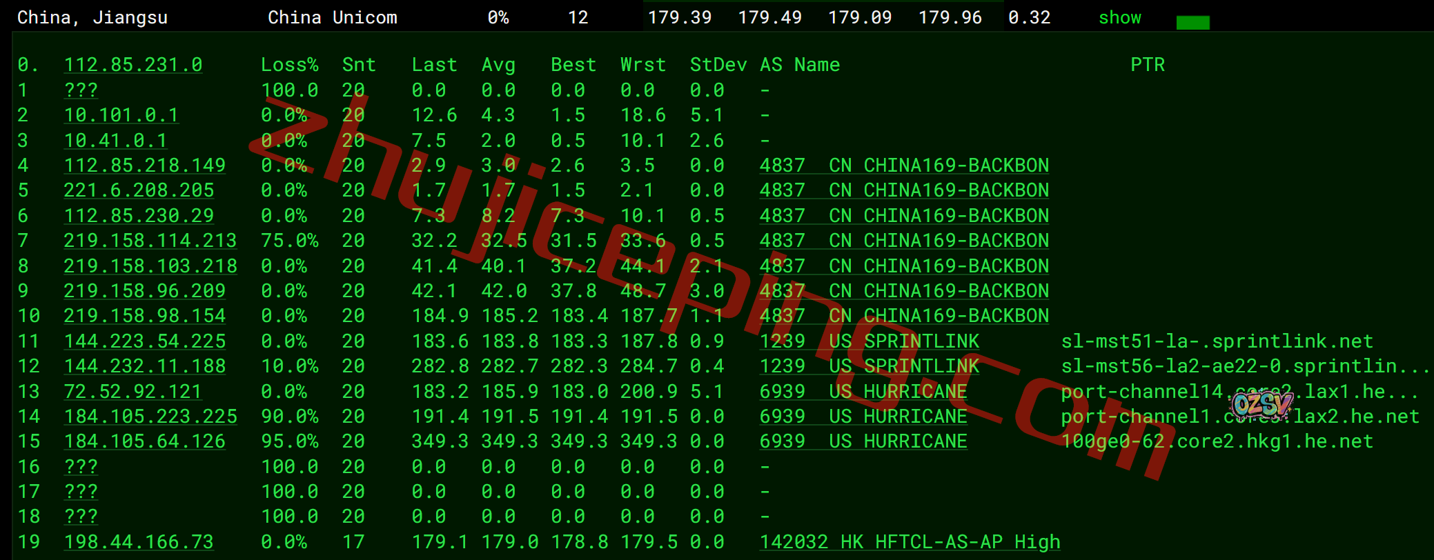 联通去程:直连联通洛杉矶节点,然后走sprintlink经过he.net从洛杉矶回香港