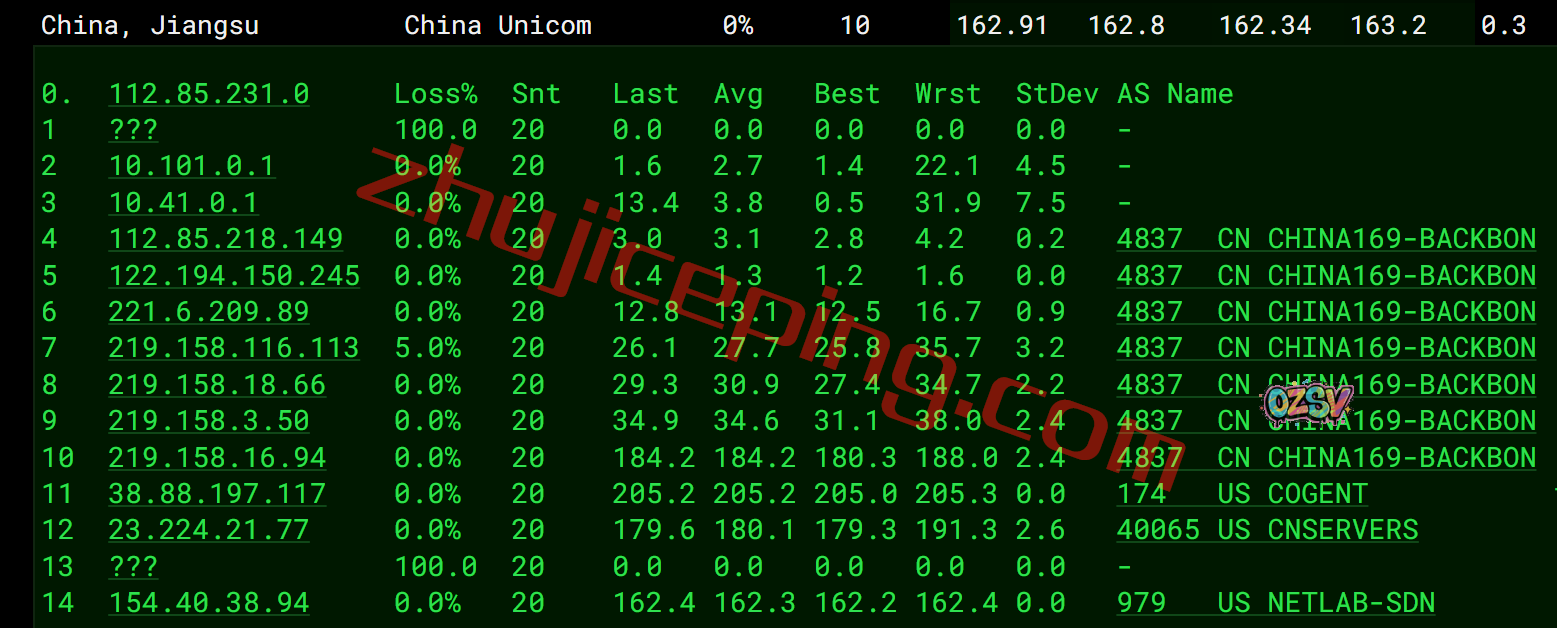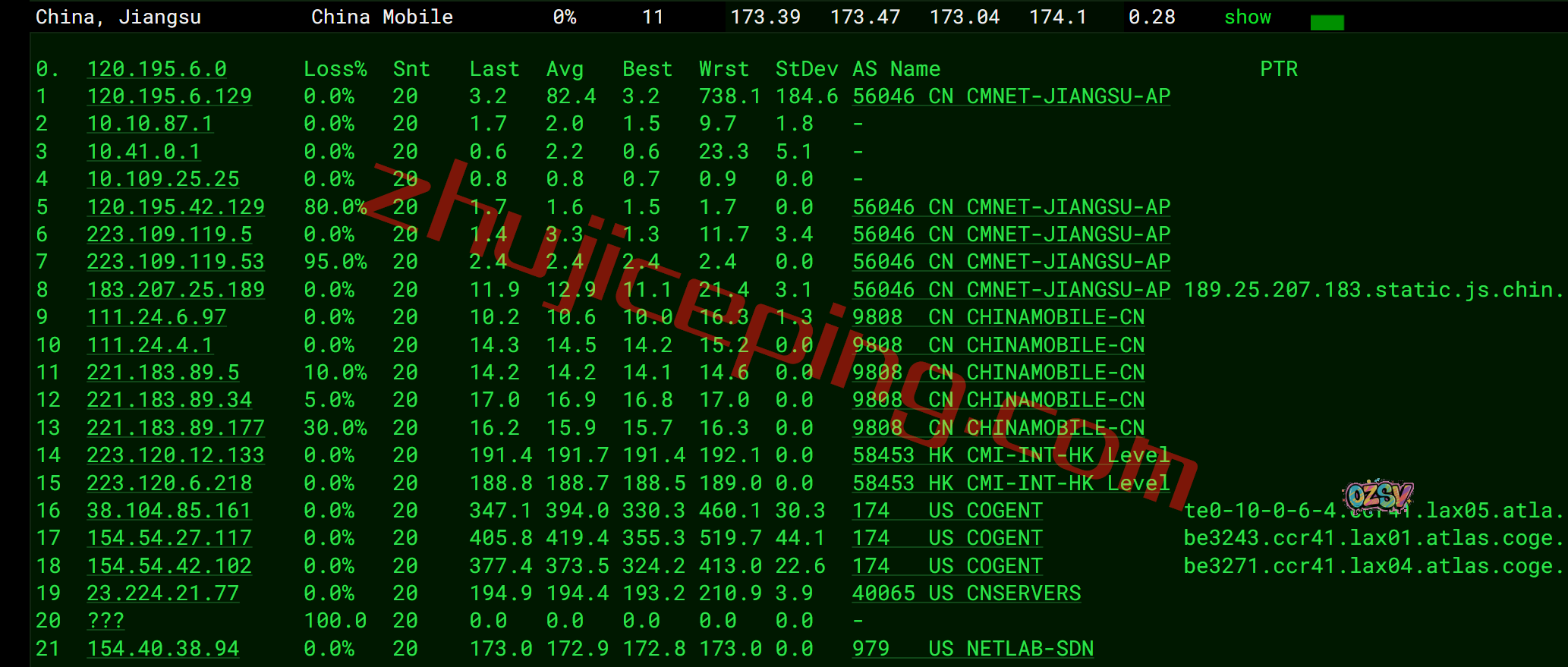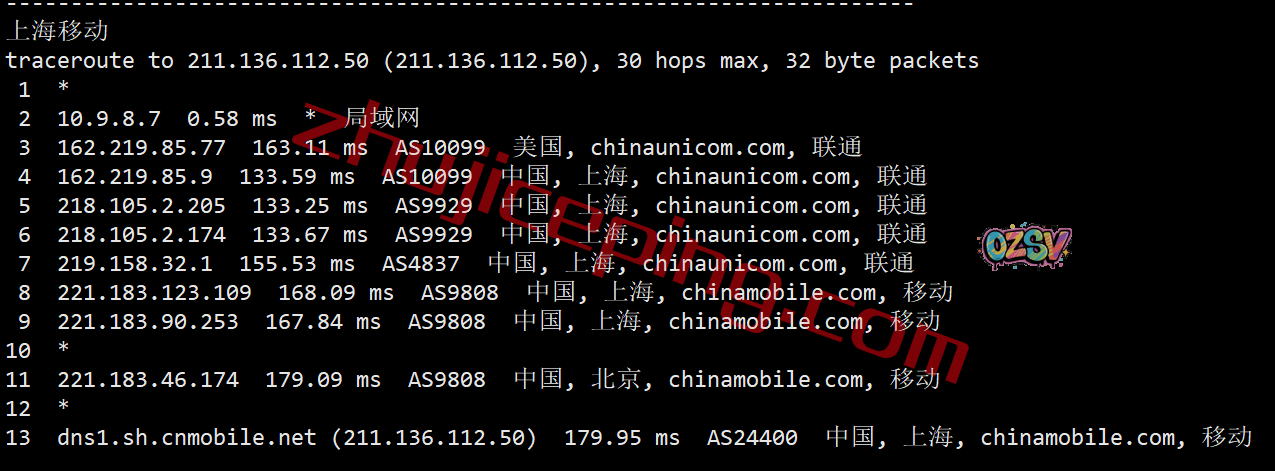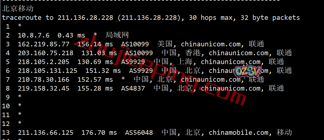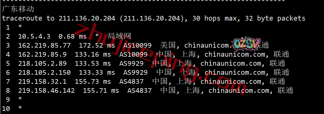移动回程:全部都是走的联通AS9929高端网络的路由回国