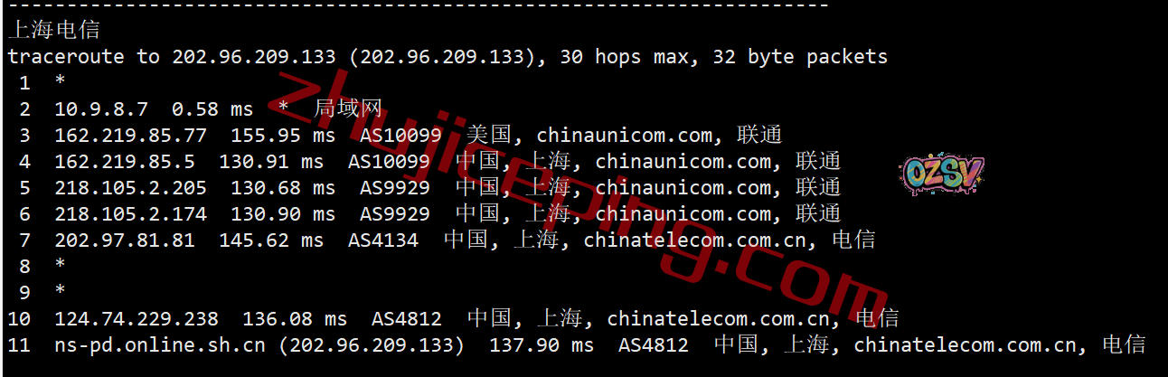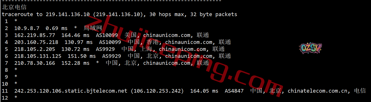 电信回程:全部强制都联通AS9929高端标准路由回国