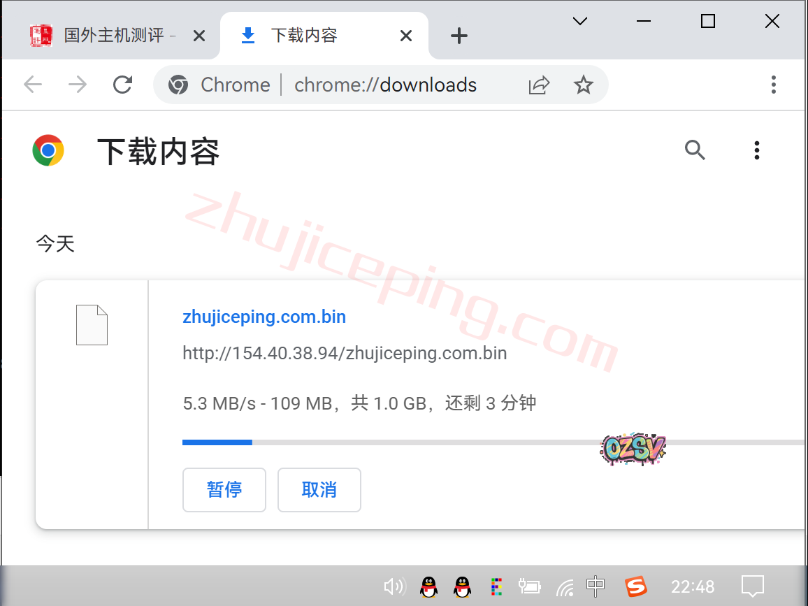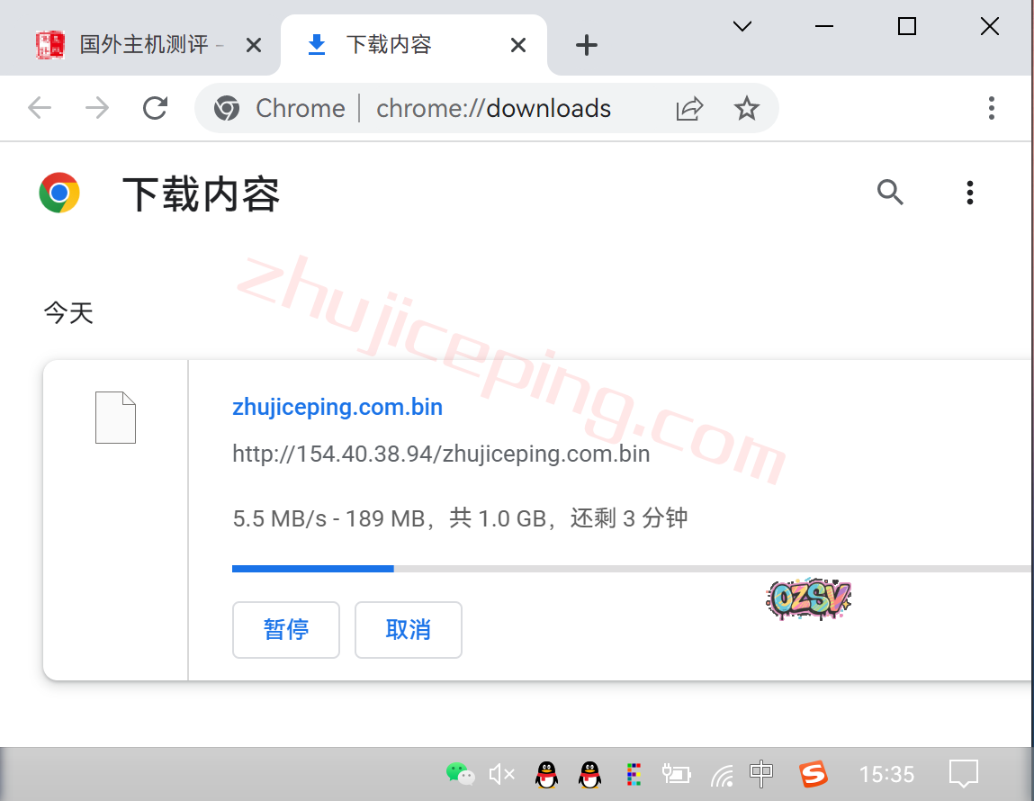 存放在测试小鸡上面的文件,广州电信家庭带宽直接通过浏览器下载,大致看看速度: