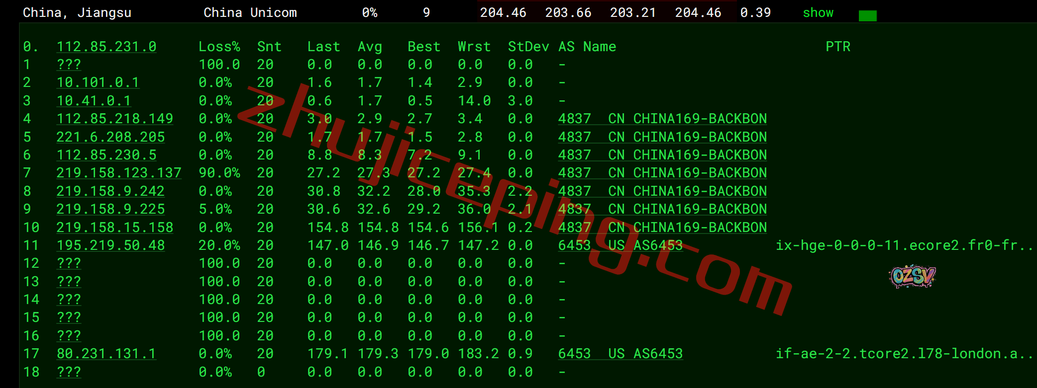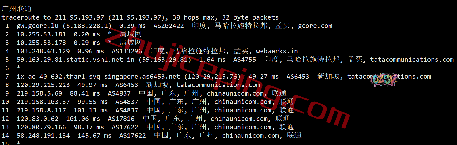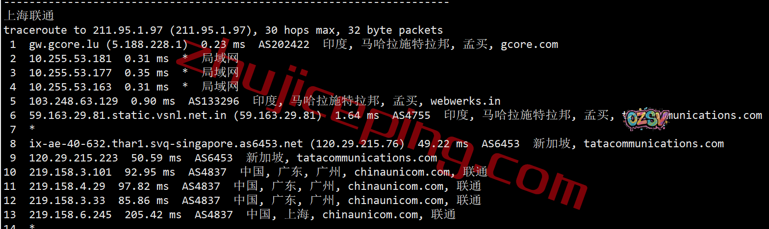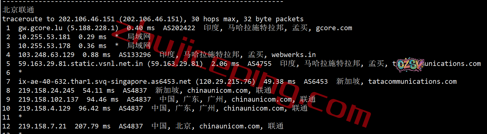 联通去程:直连联通德国法兰克福节点然后走TATA经过英国去印度