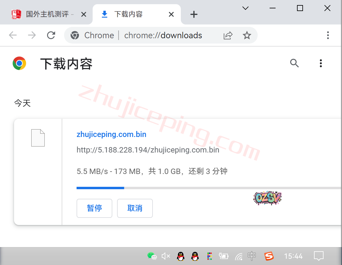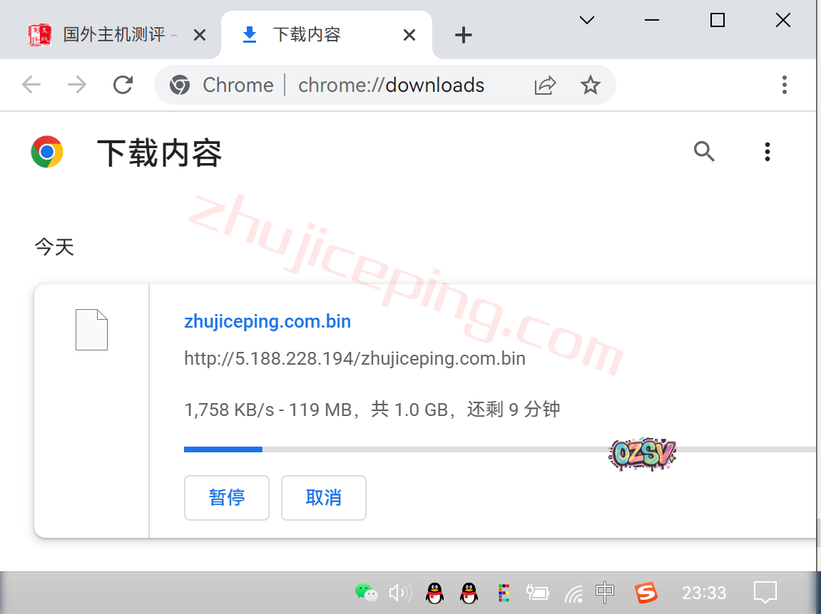 存放在测试小鸡上面的文件,广州电信家庭带宽浏览器直接下载,速度如下:
