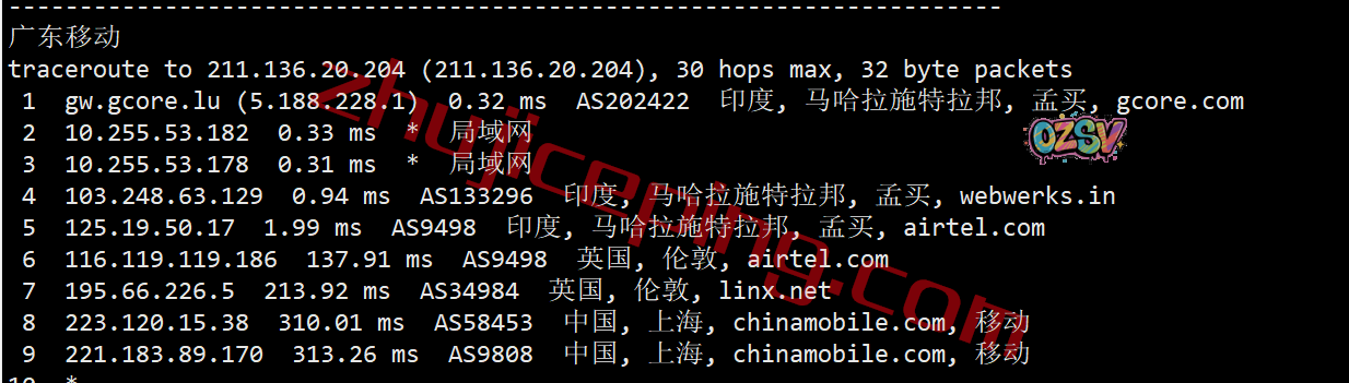 广州方向:走airtel去英国伦敦,转linx.net后回国内,国际线路