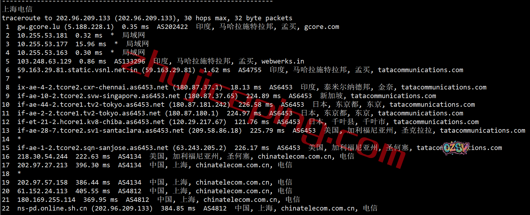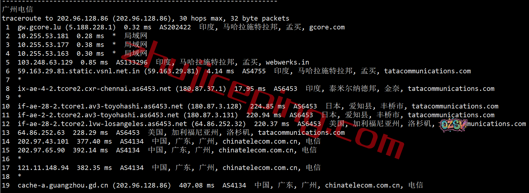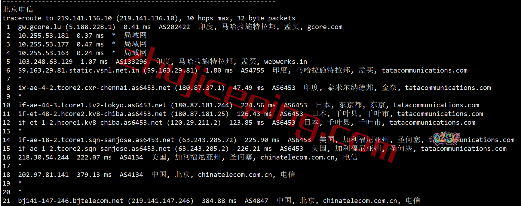 电信去程:直连电信美国圣何塞节点然后走TATA再去印度