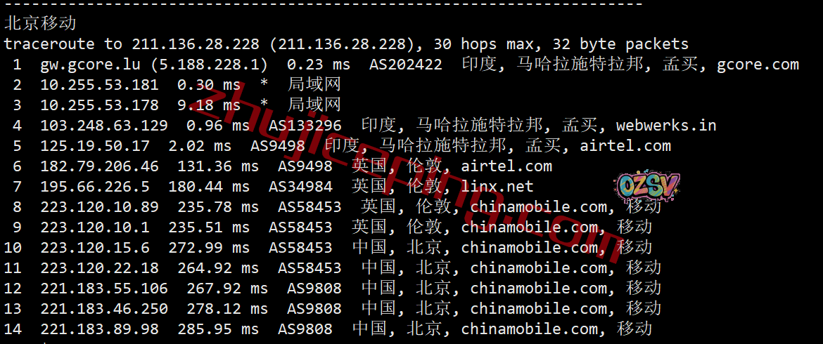 北京方向:印度走airtel去英国,从移动伦敦节点直连回国