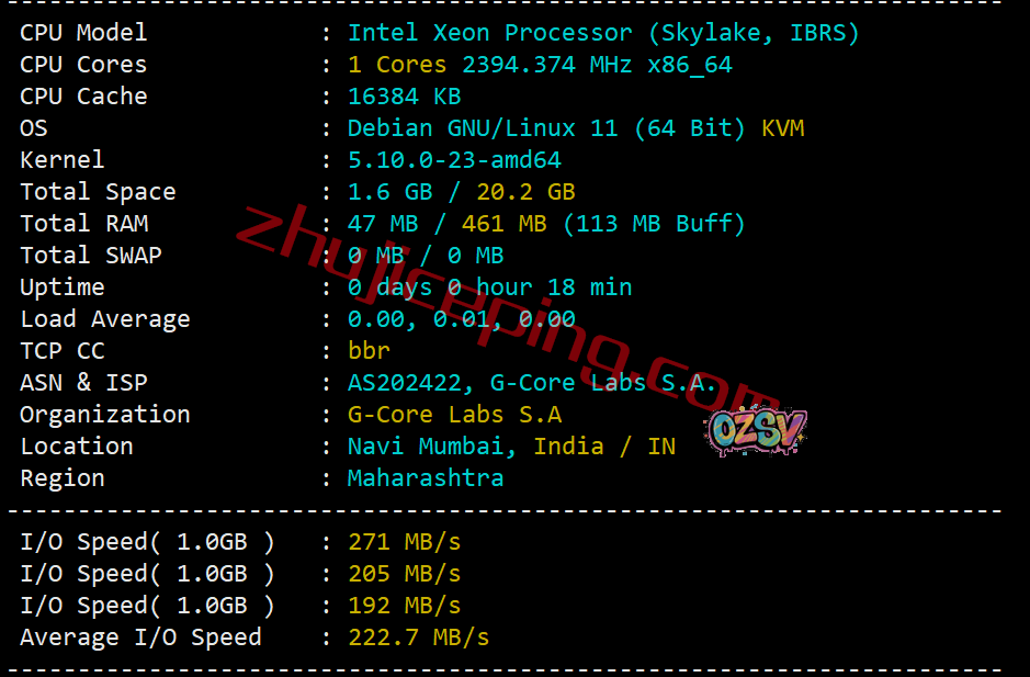 gcore vps 怎么样?gcore印度机房怎么样?gcore印度vps怎么样?gcore的印度vps部署在孟买“Mumbai”,默认采用KVM虚拟,纯SSD raid10阵列,50Mbps~100Mbps带宽,支持Linux和Windows操作系统…由于印度即将有世界第一的人口数量,所以是个潜在的巨大市场,将你的业务部署在印度是个不错的选择,那么可以参考下gcore的印度vps。本文即将为大家展示gcore的印度vps的实际情况,测评数据仅供参考!